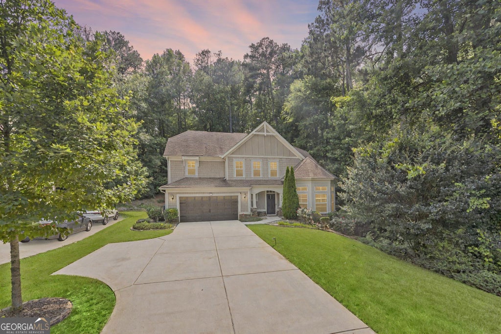 Step inside this charming two-story residence on nearly an acre in the heart of Powder Springs, blending modern comforts with classic appeal. This beautifully maintained residence features an open-concept floor plan with abundant natural light streaming through the expansive windows. The standout solarium elevation adds elegance and warmth to the living space. The kitchen is a true centerpiece, offering granite countertops, a gas stove, spacious island, generous storage, & a walk-in pantry-ideal for everyday cooking and entertaining alike. Upstairs, the oversized owner's suite includes a spacious layout, his-and-hers closets, and a luxurious bath with a double vanity and an extra-large shower. A large upstairs laundry room with vinyl flooring and additional hallway bathroom featuring a second double vanity add to the home's thoughtful design. Low-maintenance hardwood and carpet flooring throughout (with only one carpeted room on the main level), and a private, shaded backyard filled with mature trees that provide cooling relief on hot summer days. A peaceful creek lines the back of the property, offering both serenity and privacy. The home is located in a quiet, one-street neighborhood with no through traffic, creating a peaceful setting while still being close to everything. Enjoy unbeatable convenience just 1 mile from McEachern High School, 1.5 miles from Publix and Home Depot, and 2.5 miles from downtown Powder Springs. With The Avenue, Barrett Parkway, and the East-West Connector minutes away, plus the Silver Comet Trail just under 2 miles, this location truly has it all. Do not miss the opportunity to own this hidden gem that combines space, upgrades, privacy, and the perfect West Cobb location!