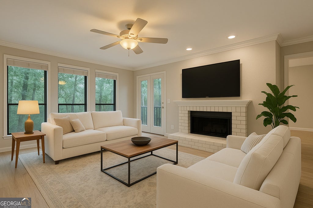 CALLING ALL INVESTORS AND HOMEOWNERS..want to live in one of the best locations in Roswell? NO STAIRS! This beautiful condo offers the opportunity to live in the heart of Historic Roswell, just minutes to dining, shops, parks, Roswell Riverwalk trail system, Chattahoochee River, festivals like Alive in Roswell, the nightlife on Canton Street (downtown Roswell) and don't miss the NEW Roswell Junction Food Hall just a short walk away with dining, live music and outdoor patio. This 2-bedroom unit has been FULLY RENOVATED from top to bottom. Large great room with wall of windows overlooking gorgeous private wooded area. Home features luxury vinyl floors throughout, newly refinished white fireplace and fresh, neutral paint throughout. Kitchen boasts stainless steel appliances, Granite counters and timeless white cabinetry. There is a large laundry room off the kitchen. The 2 spacious bedrooms are perfect for roommates, both with walk-in closets, private bathrooms and split on either side of the condo offering privacy with new cabinetry, light and bath fixtures. Enjoy peaceful evenings on the covered deck. Enjoy the use of the community saltwater pool and gas grill located at end of cul-de-sac on Warm Springs. Roof 5 yrs. HOA fees cover roofs, termite coverage, water/sewer, trash/recycling. Come enjoy the low maintenance lifestyle this condo has to offer!