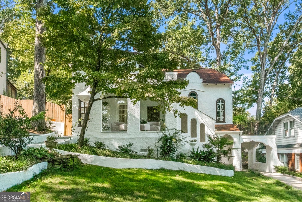 Charming Spanish-Style Home in Desirable Morningside. Discover elegant living in this stunning 1925 Spanish-style home featuring 4 spacious bedrooms and 3 beautifully appointed bathrooms. Don't miss the hand painted Talavera and terracotta tile on the exterior entrance staircase. Nestled in the heart of Morningside, this property combines classic charm with modern upgrades. Owners recently had the interior and exterior plaster restored with Vasari Carerra plaster. Step into a beautifully landscaped backyard complemented by exquisite Pennsylvania 36" bluestone stepping stones, perfect for entertaining or relaxing in nature. The front walkway is enhanced with luxurious Italian porcelain stone tile, offering a welcoming entrance. The grand living room boast 18" pecky cypress ceiling along with an oversized Moroccan style mantle fireplace. The kitchen boasts elegant tile from Merola Spain along with sophisticated chef inspired appliances that include custom walnut panels for the Bosh Benchmark refrigerator and Wolf range. The sunroom features generous 18-inch satin ceramic tile for that bright, open feel. Enjoy the beauty of white Calacatta matte recycled glass marble tile on the upstairs guest room patio. You will love the spa like primary bath featuring Calacatta gold countertops, pedestal tub, hand glazed Cle zellige tile, circa lighting, and a French Art Deco light from circa 1930. Newly added custom California closets in the primary and laundry rooms. A recently stained (Benjamin Moore Tutor Brown) deck provides the perfect outdoor retreat, surrounded by a freshly painted fence (Sherwin-Williams Rain Refresh lodge brown) ensuring privacy and style. Don't miss this opportunity to own a piece of Morningside history infused with modern luxury. Schedule your private showing today!