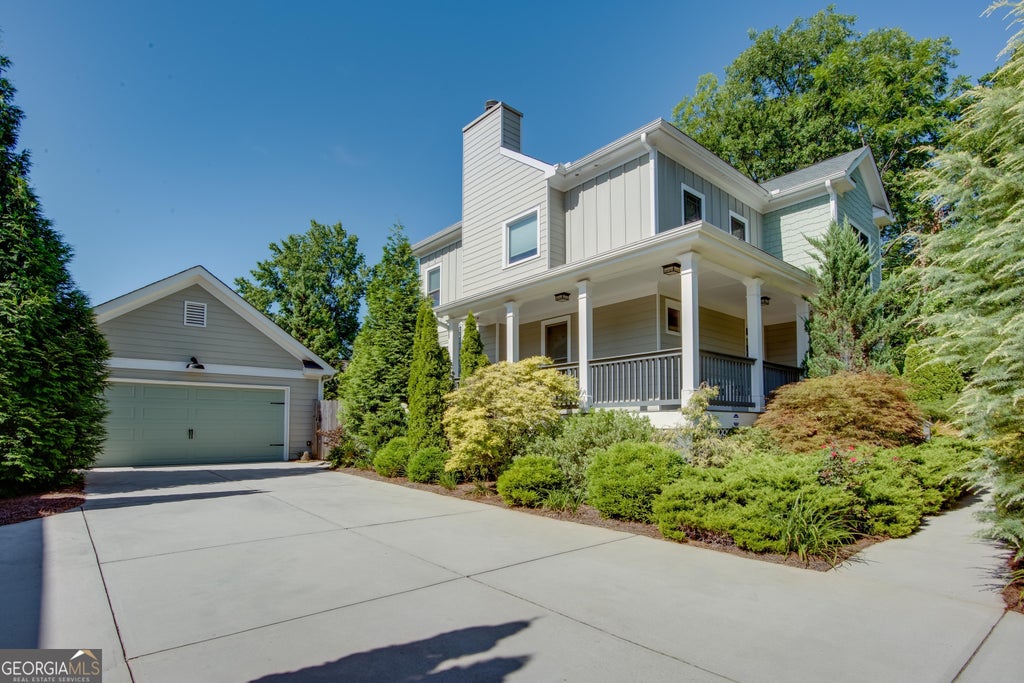 Welcome to this beautifully maintained home in the sought-after Egan Park community! Enjoy relaxing on the wraparound front porch or in your private backyard oasis, complete with a low-maintenance yard that blooms with surprises all year long. Backyard is completely fenced. Inside, you'll find a spacious open floor plan with gleaming hardwood floors throughout. The family room features a lovely coffered ceiling and a cozy fireplace (with gas starter), which flows seamlessly into the large chef's kitchen. Kitchen includes stainless steel appliances, quartz countertops, a walk-in pantry, and abundant storage. A separate dining area provides the perfect space for entertaining. The main level also offers a bedroom with a private en-suite bath. Upstairs you'll find an incredible primary suite with a tray ceiling, walk-in closet and a spa-like en-suite bathroom with double sinks. Upstairs also includes two generously sized secondary bedrooms, with a shared bath. A detached two-car garage completes the home. Seller is retiring and has loved living here, but is moving out of state. Conveniently located near Hartsfield-Jackson Airport, Delta HQ, Porsche, major Atlanta highways, Tyler Perry Studios, and Woodward Academy's main campus.