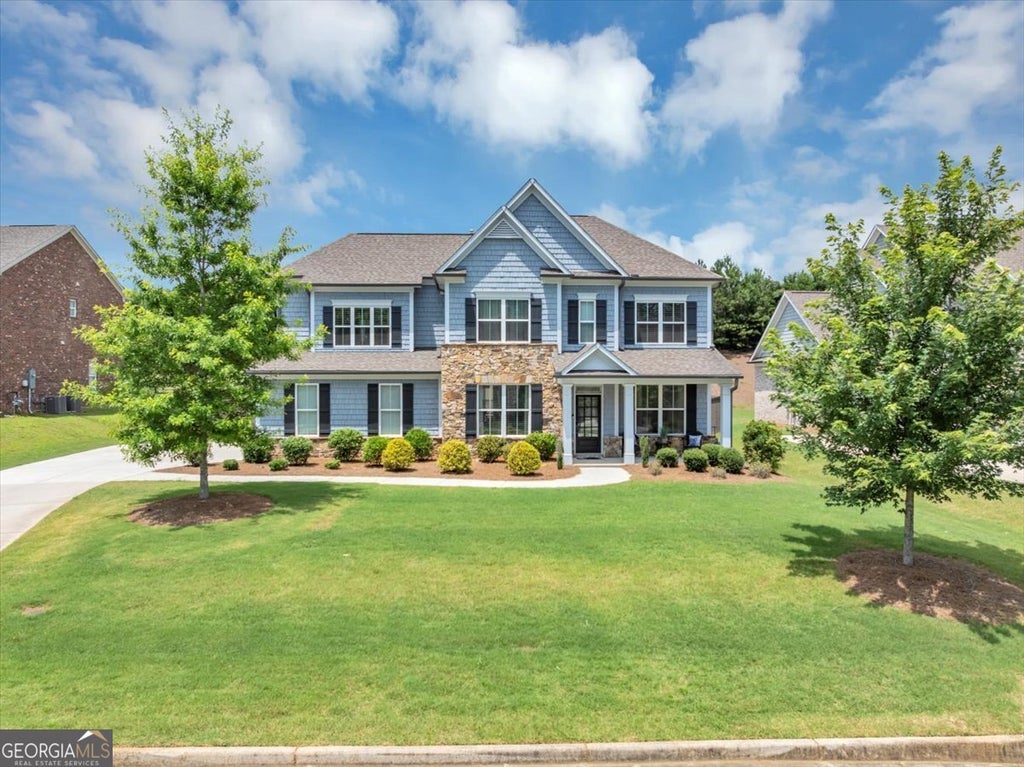 AMAZING $30K PRICED REDUCTION, WE ARE NOW PRICED TO SELL! Welcome to this gorgeous home, built in 2018 but truly better than new! From the moment you step through the front door, you'll be captivated by the fresh neutral paint tones and brand-new hardwood floors that flow through most of the main level. The inviting foyer opens to a formal living room (currently used as an office) on the right and a formal dining room (currently hosting a pool table) on the left. Continue into the heart of the home where you'll find a stunning open kitchen featuring rich dark cabinetry, granite countertops, stainless steel appliances including double ovens, a 4-burner gas cooktop, microwave, dishwasher, and deep double stainless sinks set in the island. The kitchen also includes a pantry and breakfast area and opens directly into the spacious family room, highlighted by a cozy fireplace and elegant coffered ceiling. A guest bedroom and full bath on the main level add even more functionality. Upstairs, the oversized primary suite is filled with natural light and includes a luxurious en-suite bathroom with separate his-and-her vanities, a garden tub, large tiled walk-in shower, water closet, and a generous walk-in closet. Two additional secondary bedrooms each offer walk-in closets, plus there's a huge bonus room-perfect as a media room, playroom, or 5th bedroom-and a large laundry room conveniently located upstairs. The backyard is private, mostly level, and fully fenced with plenty of space to add a pool-though the community pool is just steps away, along with a playground! Additional features include a brand-new exterior paint job (June 2025), new hardwood floors (May 2025), a zoned HVAC system, and location in a top-rated school district. All this, just minutes from great shopping, dining, and Lake Allato