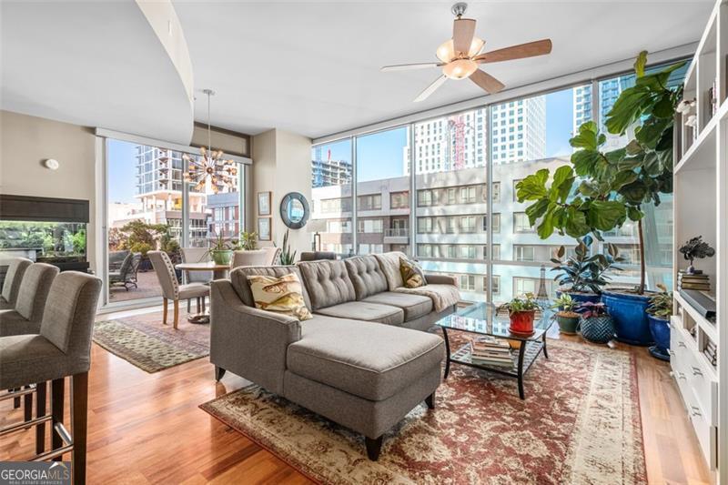 Don't miss this stunning 2 bed, 2 bath condo with 1,723 sqft of stylish living space in Aqua Midtown. Enjoy the privacy and security of a direct elevator entrance from the garage to your unit. Inside, you'll find hardwood floors throughout, floor-to-ceiling windows, and electric blinds for effortless light control. The open-concept kitchen and living area flows onto a massive 612 sqft terrace balcony-perfect for entertaining or soaking in the Midtown skyline. Both bedrooms are generously sized, and the building's recently upgraded amenities include a pool, cabanas, club room, outdoor grills, and a top-notch gym. Deeded storage and assigned garage parking included.