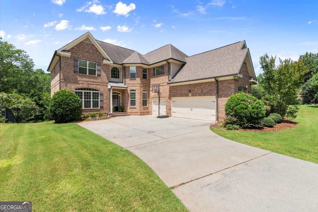 Absolutely phenomenal executive home in the highly sought-after Pope High School district, nestled within a quiet boutique neighborhood on a beautifully landscaped 3/4-acre lot. Enjoy complete privacy and a spacious backyard with plenty of flat lawn - perfect for outdoor fun, pets, or future pool plans. This impeccably maintained home blends timeless style with everyday functionality. At its heart is a bright, open-concept kitchen featuring a large center island, walk-in pantry, and effortless flow into the living space - perfect for entertaining and family life. A stunning double-sided stone fireplace anchors both living areas, creating warmth and character throughout the main level. Additional main-floor highlights include rich hardwood floors, abundant natural light, a dedicated home office, and a stylish dining room. A guest suite on the main level adds flexibility for visitors or multigenerational living. Upstairs, the spacious primary suite offers a serene retreat with a cozy sitting area, spa-like bathroom with walk-in shower and soaking tub, and an oversized walk-in closet. Three additional bedrooms include one en-suite and a Jack-and-Jill, each with generous closet space. A large media or bonus room provides the perfect space for movie nights, a playroom, or homework zone. Brand new carpet was just installed throughout the upper level. Step outside to enjoy the peaceful screened-in porch, grilling deck, and lower-level patio - all overlooking a fully fenced, flat backyard oasis. A spacious 3-car garage completes this exceptional property.