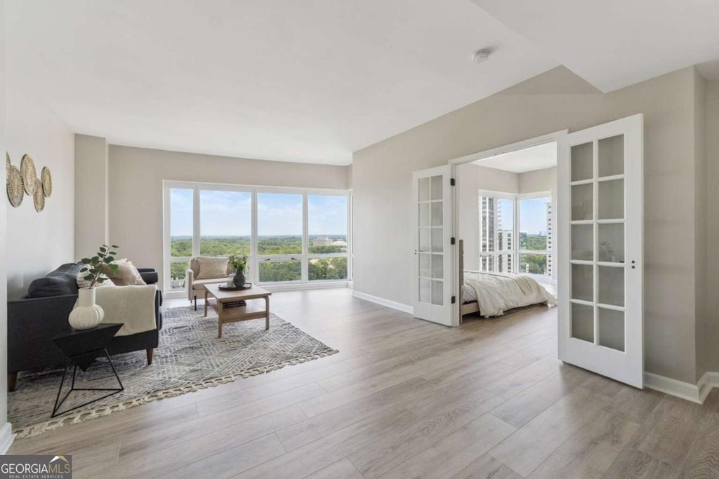Experience the epitome of luxury in the heart of Buckhead Heights, one of Atlanta's most prestigious neighborhoods. The Oaks at Buckhead, a 30-story high-rise, boasts four rooftop sun terraces that offer an unparalleled perspective of the city. Its unique architecture allows for corner units with wraparound views that are truly spectacular. This 15th-floor beauty features a recently renovated two-bedroom, one-and-a-half-bathroom condo with views at every turn. Residents of this full-service building enjoy resort-style amenities, including 24/7 security, concierge service, an onsite property manager, a dedicated building engineer, a gated and secure parking deck with deeded parking space, a business center with Wi-Fi, printing, and a sophisticated private conference room. The premium fitness center boasts spectacular views, complete with a relaxing sauna. A private, secure storage unit is also included in the condo, an incredibly rare and coveted feature in this building. Outdoor entertaining features a poolside pavilion equipped with gas grills, a substantial pool, and a hot tub. The elegant club room offers indoor entertaining with a large full kitchen, a big screen TV, a massive dining table, an elegant sitting area, and several patio dining tables with views of the beautifully landscaped courtyard, which includes a gazebo, veranda, and walking paths. On-site guest suites are available for visiting family and friends, complete with a bedroom, a full bathroom, a kitchen with secured gated parking. Nestled just steps from upscale shopping and dining, Phipps Plaza, Lenox Mall, Whole Foods, Trader Joe's, Publix, Target, and many more cafes, the Oaks at Buckhead offers easy access to Marta and GA-400. Don't miss your chance to live the dream in one of Atlanta's Premier Communities, where luxury, privacy, and security come together!