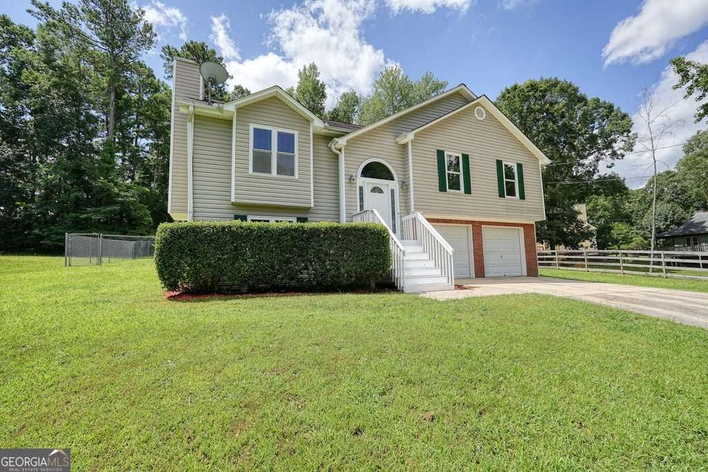 Welcome to this charming 4-bedroom, 2-bath raised ranch in the sought-after New Hope community of Dallas. Tucked away in a quiet, well-established neighborhood with no HOA, this home sits on a huge lot offering both privacy and plenty of space to enjoy. Step inside to a spacious, open family room highlighted by a beautiful stone fireplace and gleaming hardwood floors throughout the main level. The primary suite on the main floor provides a peaceful retreat with an attached bath featuring a relaxing soaking tub. Two additional bedrooms and a full bath round out the main level. Downstairs, the finished basement offers a large fourth bedroom, a laundry area, and space already framed for an additional bathroom-perfect for future expansion. The attached two-car garage provides excellent storage and convenience. Outside, enjoy the serenity of a fenced backyard with a deck overlooking the property and an outbuilding for extra storage or hobbies. 2022 upgrades include.......HVAC Replacement, Appliances, Hot water heater, and Flooring. All this in an amazing location close to schools, shopping, and just minutes from Dallas, Acworth, Cartersville, and Hiram.
