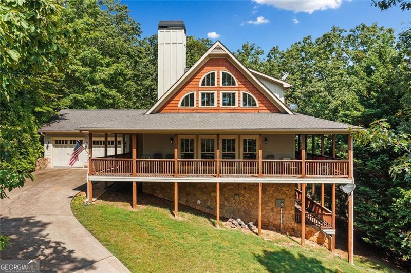 Come home to this mountain retreat located in the sought-after, gated Lake Arrowhead community. This custom home has an extensive wrap-around double-deck porch, perfect for outdoor entertaining or enjoying peaceful wooded views year-round. Step inside to soaring vaulted beam ceilings, a dramatic 2-story stone fireplace, and an open-concept living area filled with natural light. The spacious main-level master suite features its own cozy fireplace, a spa-like bath with double vanities, jetted soaking tub, and a separate walk-in shower. Additional highlights include an unfinished terrace level, lofted flex space, and timeless mountain architecture throughout. Enjoy resort-style amenities including a private lake, golf, pools, trails, and more - all just an hour north of Atlanta