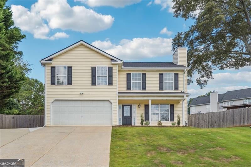 Fantastic Cul-de-sac lot with Huge Fenced in back yard! The 3bd / 2 1/2 bath home with front porch and large covered back patio is MOVE IN READY! Nothing needed! New Roof, wood flooring on the main level, , stainless steel appliances, new carpeting upstairs, fresh paint inside, maintenance free siding, tiled master shower, new upgraded vanities in the primary bathrooms, decor walls, vaulted master ceiling, extra parking in the front of the house and also in the fenced in back yard, separate storage building in the back yard, lean to coverage for boat, lawn equipment cars, etc.. This place is a GO!