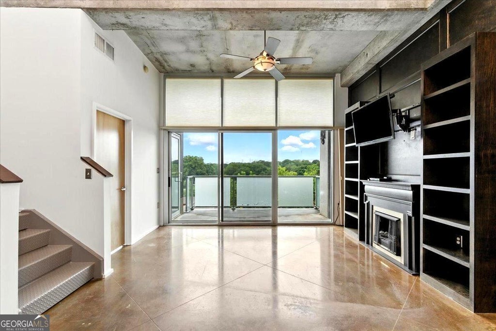 Welcome to this Fantastic Loft with lush tree-top vistas leading to downtown Atlanta skyline at AZ2 Lofts. Great open space with soaring 22 ft ceiling with scored and painted cement floors and Hunter Douglas window-treatments throughout. Beautiful kitchen with glass tile backsplash, granite countertops with breakfast bar, European style cabinetry, Stainless appliances all open to living/dining area leading to a covered full-length balcony. Retreat upstairs to the loft style, oversized primary suite complete with a custom walk-in closet and a luxurious en-suite bath, featuring a Japanese soaking tub, an oversized walk-in tiled shower with dual action heads, offering the ultimate retreat. Off of lofted primary suite, step out onto your private, sizeable balcony- an ideal spot for morning coffee or evening relaxation. Two additional rooms on main, with custom built closets for bedrooms or office and connected by a convenient full bathroom. There are 2 assigned parking spots, Storage unit and a Cubby space for more storage. Solid amenities - enjoy a workout in the deluxe gym, enjoy summer days relaxing by the two saltwater pools. Located just minutes from Pullman Yard, Kirkwood, Candler Park and the City of Decatur, you'll love the convenience of InTown living with vibrant dining, shopping, and parks nearby.