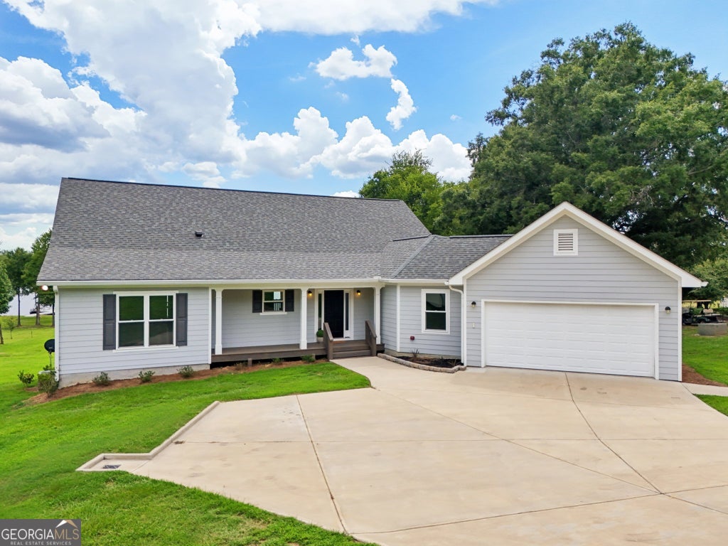 Lake Oconee lakefront home * Max dock * Covered deck and patio * Near Publix and Reynolds Lake Oconee * 3D virtual tour & floor plan included Experience lakeside living in this like-new 3BR/2BA ranch at 1051 Twin Rivers Road in the Twin Rivers area of Lake Oconee. Built in 2022, this property offers 2.08 acres with approximately 106 feet of main lake frontage, a gentle slope to the shoreline, and a private max dock ideal for swimming, boating, or kayaking. The single-level design features an open floor plan with hardwood and tile flooring, a bright living area with French doors to a covered deck, and panoramic lake views. The kitchen includes an island with breakfast bar, solid-surface counters, stainless-steel appliances, cooktop with vent hood, and pantry storage. The primary suite on the main level provides lake views, a large walk-in closet with built-in organization, and a bathroom with dual sinks, a separate shower, and solid-surface counters. Additional bedrooms feature lake or wooded views. The full terrace level is unfinished but plumbed for a full bath and pre-wired for electrical, offering the potential to double your living area. A gravel pad on the adjacent lot provides extra parking or space for a future garage, workshop, or boat/RV storage. Enjoy outdoor living with a covered porch, deck, and patio overlooking the lake-ideal for dining, relaxing, and sunset views across the water. The property also includes a 2-car attached garage, paved driveway, and Hardie board exterior. Utilities include community well water, septic system, and cable internet. Conveniently located within 1 mile of Publix, Starbucks, and Lake Oconee Village, and just minutes from Reynolds Lake Oconee golf courses, marinas, and dining. Approximately 10 minutes to I-20, offering easy access to Madison, Greensboro, and Atlanta. Includes 3D virtual tour and interactive floor plans for easy viewing. This home combines modern comfort, future expansion potential, and prime Lake Oconee frontage in a peaceful setting with no HOA fees. A rare opportunity for lakefront ownership in Greene County.