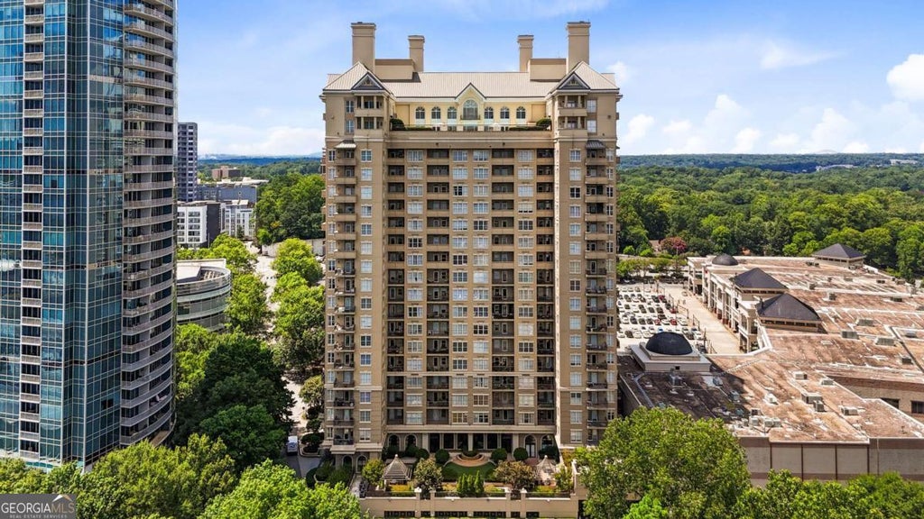 Perched on the 16th floor of the Meridian Buckhead, this light-filled corner unit offers sweeping sunset views and one of the most desirable layouts in the building. With three true bedrooms and windows on two sides, the open-concept living and dining spaces feel airy and inviting. The kitchen is equipped with custom ceiling-height cabinetry, granite countertops, stainless steel appliances, and a full-size pantry. Thoughtful upgrades include wide-plank flooring, designer lighting, modern fans, and sleek neutral tones throughout. The bathrooms feature frameless glass showers-one wrapped in floor-to-ceiling Carrera marble-double vanities, and contemporary fixtures. Each bedroom includes a custom closet system, and a spacious laundry room adds extra storage and convenience. Two assigned parking spots are included. Residents enjoy top-tier amenities: 24/7 concierge, rooftop pool, full fitness center with squash court and saunas, theater room, library with conference space, billiards lounge, and beautifully landscaped gardens with a putting green, fire pit, and grilling areas. All just steps from Buckhead's best dining, shopping, and access to Path 400.
