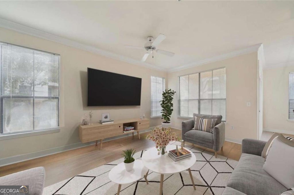 Zero stairs from car to condo. Perfect for pet owners or grocery hauls. This is low-maintenance, high-comfort living at its best. Welcome to this rare first floor 2 bedroom, 2 bath gem in the coveted Peachtree Place community where convenience, privacy, and charm come together. This unit doesn't share any perimeter walls, and it's been lovingly maintained by the original owner. Two assigned parking spaces are ideally located on the first floor of the parking deck, right next to a handicapped space. Inside, you'll find brand new luxury vinyl plank flooring in the bright and open living and dining areas, with direct access to your private patio. Steps from the community grill, ideal for easy outdoor dinners. The kitchen features granite countertops and plenty of cabinet space, while both bedrooms include walk-in closets. The vaulted ceiling in the primary suite adds an elegant touch. Enjoy premium amenities like twice-weekly doorstep trash pickup, AT&T fiber internet, a pool, clubhouse, business center, and more. All within a gated, beautifully maintained community. Come see it today!