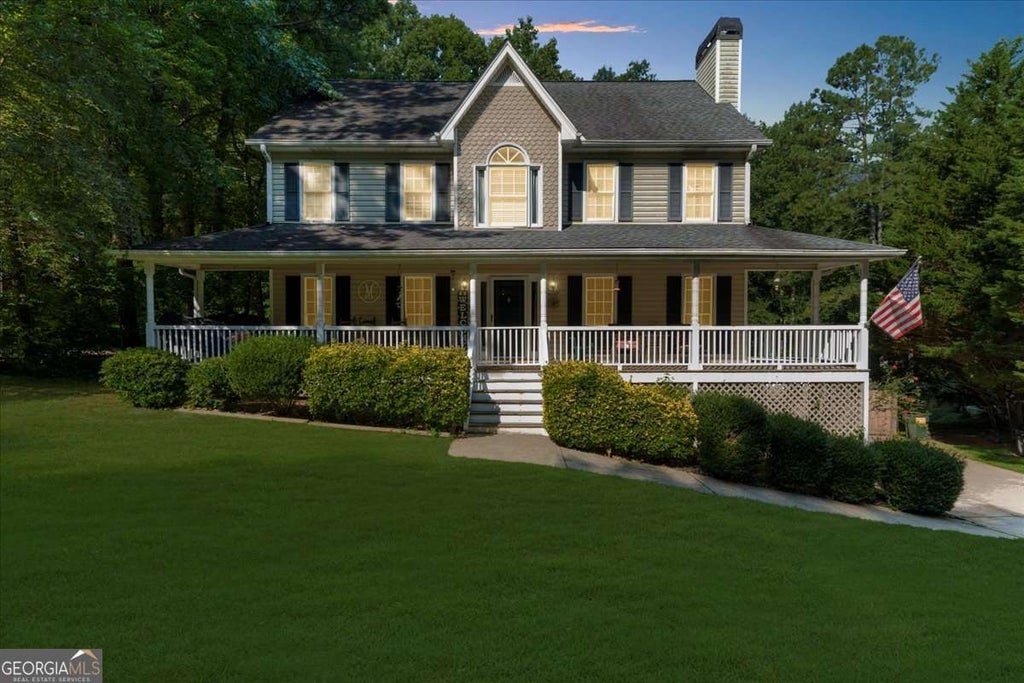 Welcome to 320 Warrenton Dr, a charming 3 bed, 2.5 bath home in Douglasville that perfectly blends Southern charm with modern updates. From the moment you arrive, the large rocking chair wraparound front porch invites you to sit back and unwind. This well maintained home also boasts a huge covered back deck-ideal for entertaining or quiet evenings outdoors. Inside, the spacious master suite impresses with vaulted ceilings, while recent updates include a newer roof, updated HVAC, fresh interior paint, and new carpet upstairs. The kitchen features warm brown cabinetry, durable laminate countertops, and sleek black appliances. Nestled on 1.36 acres with a partially fenced backyard and an unfinished basement offering endless potential. This house is a must see! Schedule showing today! By appointment only, please do not show up to house unannounced!
