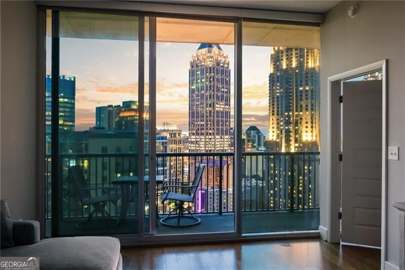 Gorgeous 23rd-floor residence in the highly sought-after 1010 Midtown! This impeccably maintained unit features soaring 10-foot ceilings, upgraded hardwood floors throughout, and a private balcony offering sweeping skyline views. The spacious primary suite includes a double vanity, separate tub and shower, and a custom walk-in closet system. The secondary bedroom boasts newly added built-ins, providing stylish and functional storage. Enjoy resort-style living with top-tier amenities including a pool, state-of-the-art fitness center, and on-site restaurants-all in one of Midtown's most desirable communities.