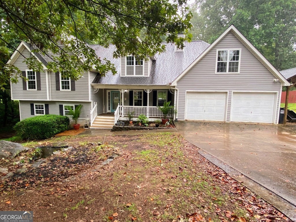 Welcome to 110 Kacey Court-a fantastic opportunity on the outskirts of Powder Springs, offering space, character, and peaceful surroundings. This 4-bedroom, 3.5-bath home sits on a partially wooded .82-acre lot with a creek, garden space, and plenty of room to roam. Inside, you'll find two primary suites, including a spacious private retreat on its own level with a bonus room or office, multiple walk-in closets, and a spa-style en-suite bath with soaking tub and walk-in shower. The finished basement includes a custom bar, fiber optic lighting, and entertainment space, with a gas line already in place for a future fireplace or heater. The kitchen is flexible and functional, offering both electric and gas hookups for the stove, and a newer dishwasher. New carpet in all three secondary bedrooms. Smart home features-including a Ring doorbell, Ring floodlight cam, Ecobee thermostat, and smart front door lock-will remain with the home. Outdoors, you'll find a covered patio with pergola and ceiling fan, an oversized 2-car garage, a carport, and a versatile outbuilding that could be used for storage or turned back into a chicken coop. The backyard also features fruit trees, a custom-built treehouse, and a relaxing natural creek. Located just minutes from Taylor Farm Park and local schools, and only 30 minutes to Atlanta, this well-loved home is now priced at $365,000 and ready for its next chapter. Agent is married to seller.