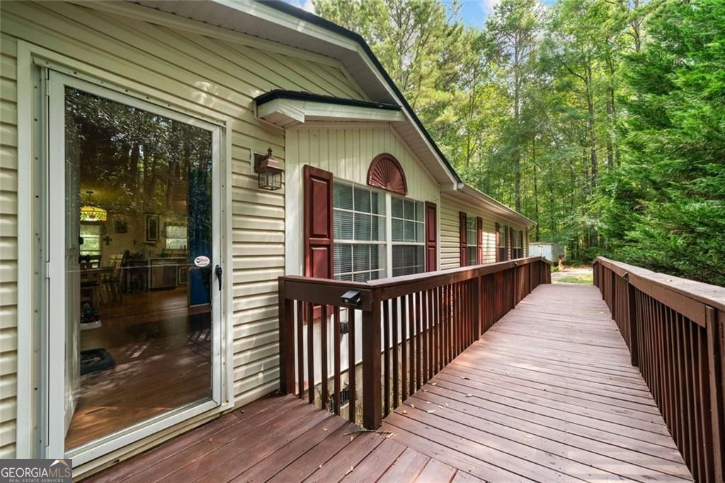 Peaceful country living on over 8 private, wooded acres with no HOA! This updated 3 bed, 2 bath ranch features new laminate wood flooring, fresh paint, and remodeled bathrooms. The kitchen boasts updated countertops, painted cabinets, dual backsplashes, new sink, and butcher block island. The oversized primary suite includes a versatile sitting area-perfect for an office, playroom, or bonus space. Enjoy upgraded lighting, ceiling fans, tankless water heater, large laundry room, and two storage sheds. Outside you'll find a freshly painted deck, new front porch and stairs, and a wheelchair-accessible ramp. Tons of room to roam, garden, or expand-just minutes from downtown Monroe! **Landscaping shown in the primary photo has been digitally enhanced for illustrative purposes**