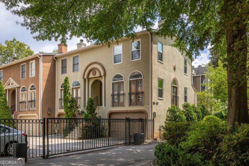 Located in Midtown's Garden District, this lovely townhome within the peaceful Piedmont Villas community is an offering that rarely comes available. As an end unit, this townhome boasts windows on three sides, in addition to skylights, providing abundant and beautiful natural light throughout. The main level features an open and bright layout with a living space anchored around a fireplace, clean and bright kitchen with breakfast bar, and rear french doors which lead out to a private deck. Additionally, there are three bedrooms - all of which have their own ensuite baths. The terrace level has many possibilities including serving as a guest room, office, or fitness room. Generous and wide garage space provides ample storage in addition to secure parking with additional parking available in front of the garage. Within the Virginia Highland Elementary school district and centrally located, this home offers convenience to Piedmont Park and everything Midtown has to offer, all while remaining tucked away within a small and serene community - truly the best of both worlds. Freshly painted throughout and windows have been recently replaced providing added efficiency along with peace of mind. Piedmont Villas is a gated community with fee simple ownership, very low HOA dues, and no rental restrictions - providing additional opportunity and value should the need or desire ever arise. Come see why the residents of Piedmont Villas love calling this special community with prime location home.