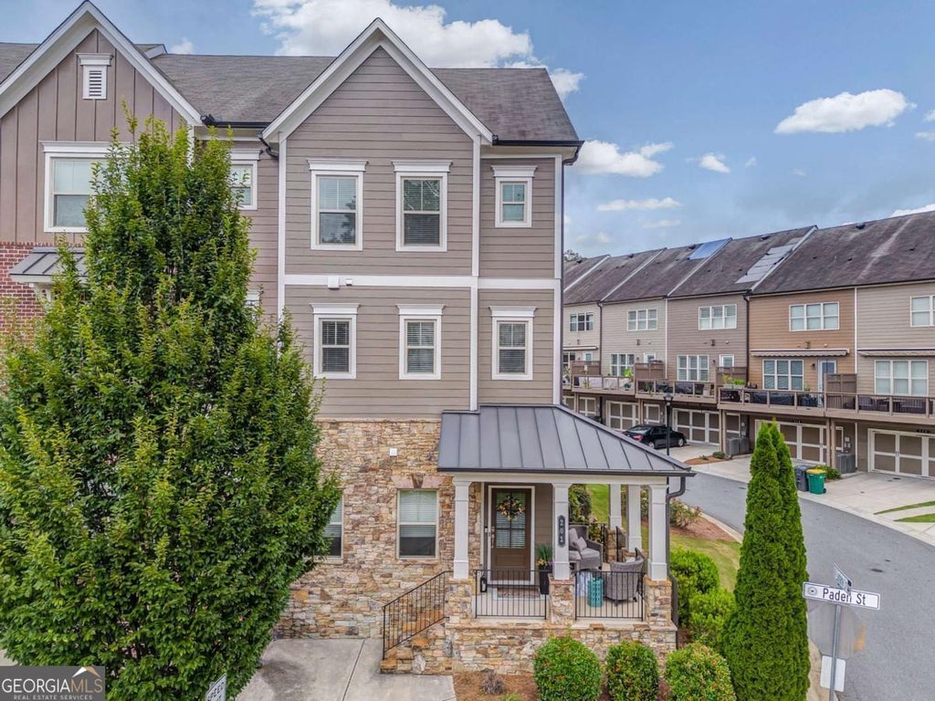 Welcome to Luxury Lifestyle Living in the heart of Downtown Woodstock this end unit at 28 And Mill is only a block from main street! This upscale townhome features 3 well appointed levels, offering about 2,143 sq ft of thoughtfully designed living space. It includes a 2 car rear entry garage and a covered front porch- ideal for greeting neighbors and guests the rear deck is perfect for relaxing or entertaining. Upgrades include but are not limited to wood accented walls creating a modern aesthetic thick rich textures that elevate the entire space. The kitchen flows into the dinning area - then to the living room. High ceilings oversized window, crisp trim detailing amplify the airy open feel. Gourmet kitchen is a delight to the chef in your family with the oversized island extra cabinets and counter tops - double ovens make cooking a breeze! The pantry-laundry-all closets have solid wood shelving built for serious storage. Roommate floor plan with the lower level having a bedroom with a full bathroom suite. Attic plus above garage you will find extra storage space. This home is unapologetically stylish every surface is refined not your ordinary home. This is the kind of home that whispers I know what I'm doing and shouts make an OFFER!!! Perfect for the smart classy functional mind set with ZERO fluff! Also this unit is framed up for an elevator to be installed if needed.