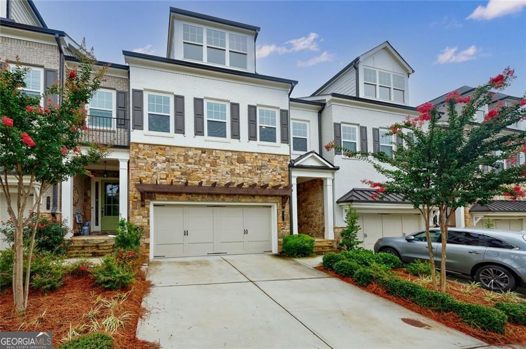 From the moment you step into this custom-built townhome, you'll appreciate the thoughtful design and high-end finishes throughout. Wide plank, hand-scraped hardwoods set the tone, while the chef's kitchen steals the show with quartz countertops, double wall ovens, a sleek microwave drawer, and tall 42" upper cabinets topped with elegant glass-front display cabinets for added storage and style. Very desirable in the community, this home is one of the very few in the neighborhood with a basement. Featuring 10 foot ceilings on main, the Concord floor plan offers an open, sun-drenched main level with a seamless flow to the private backyard and elevated deck-perfect for morning coffee or evening entertaining. The separate dining room and adjoining family room create the perfect setting for hosting family and friends, while the oversized island serves as the heart of the home-ideal for meal prep, casual dining, or just gathering around with good company. Storage is no afterthought here-every level offers generous closets, with custom shelving behind nearly every door. And yes, it's elevator-ready. Upstairs, you'll find an expansive landing (think reading nook or homework station), along with a spacious primary suite that includes a cozy sitting room with an electric fireplace-ideal for Netflix marathons or your dream home office setup. The spa-inspired ensuite bath features dual vanities, a frameless glass shower with bench, and a soaking tub to unwind in style. The custom closet flows effortlessly into the connected laundry room-smart and convenient. Two additional upstairs bedrooms and a full bath offer flexible space for guests, kids, or whatever life throws your way. The lower level features a fourth bedroom, full bath, large family room, and bonus flex space-perfect for a gym, hobby room, or game night central. Situated directly across from the expansive community green space, you will enjoy resort-style amenities including two pools, tennis and pickleball courts, dog parks, walking trails, a community garden, and a clubhouse that hosts everything from food trucks and wine tastings to fitness classes and live music on the green. Located in the sought-after gated community of Harlow, you're just minutes from Avalon, downtown Alpharetta, historic Roswell, and the Ameris Bank Amphitheatre. Luxury, comfort, and connection-it's all waiting for you at Harlow.