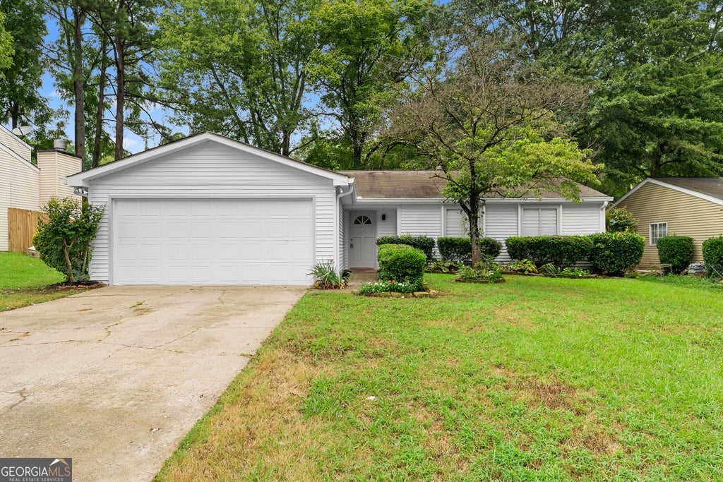 Charming, updated ranch in Roswell, GA. Step into the living room with a vaulted ceiling and cozy fireplace-perfect for relaxing. The kitchen features crisp white cabinetry, stainless steel appliances, stone countertops, and a tiled backsplash. The primary suite offers a private retreat with a fully renovated en-suite bathroom, luxurious shower, updated vanity, and trendy black hardware. The second bathroom has been similarly updated. The fenced backyard includes a covered patio, ideal for pets, relaxing, or entertaining. Additional features include a side patio and a two-car garage.
