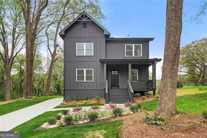 This stunning new construction home perfectly blends modern elegance and inviting charm, offering luxurious finishes, spacious open-concept living, and impeccable craftsmanship in the heart of Atlanta. From the moment you step onto the welcoming front porch and into the soaring foyer, you'll be captivated by the thoughtful design and seamless flow of the home. The expansive living room, centered around a gorgeous fireplace with backyard views, opens effortlessly to the chef's kitchen, featuring a stunning Quartz waterfall island with hidden storage, floor-to-ceiling shaker-style cabinetry, sleek granite countertops, modern fixtures, and high-end stainless steel appliances. A versatile main-level room with an en-suite bath serves as the perfect home office, playroom, or guest suite. The owner's suite is a true retreat upstairs, boasting a custom wood-paneled accent wall, a spa-like bath with a soaking tub, frameless glass shower, and an oversized walk-in closet. Additional bedrooms offer ample space for relaxation, guests, or work-from-home flexibility. Interior highlights include stunning hardwood floors, a built-in wine cooler, designer accent walls, and a modern fireplace. Step outside to enjoy the BBQ-ready outdoor space, perfect for entertaining. Ideally located just minutes from Hartsfield-Jackson Atlanta Airport, major interstates, top restaurants, shopping, parks, walking trails, and the Beltline, this home offers unparalleled convenience, style, and comfort. Don't miss the opportunity to make this exquisite new construction home yours!
