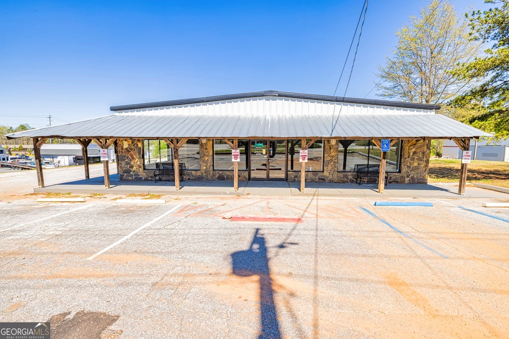 Great property with visibility from 19/41 right between Waffle house and Tractor Supply. 6250 sf with 2 offices, an open space for retail or showroom, plus a warehouse area with roll up doors plus 3 bathrooms. Located in N Spalding County not far from the Speedway. 17 parking spaces and covered walkway in the front. Great traffic and visibility