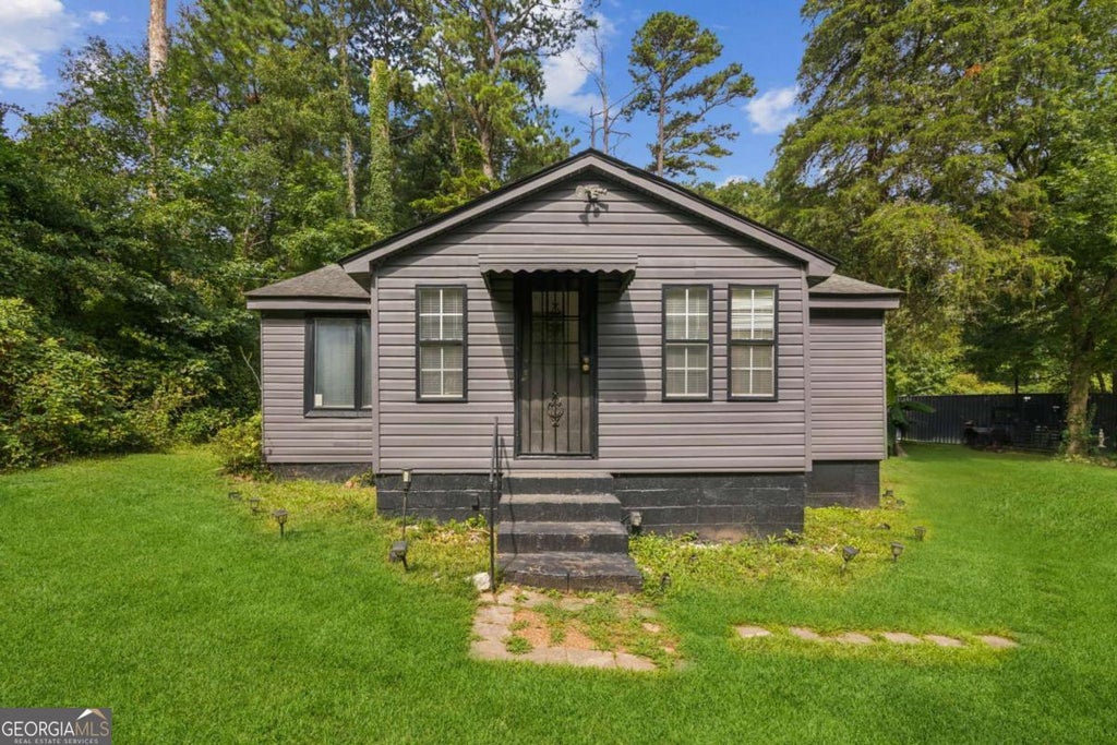 Incredibly unique one bedroom bungalow with bonus shipping container living space, AND a two room underground bunker/fallout shelter! Don't let the unassuming facade fool you, this is a once in a lifetime opportunity to own a fully equipped one-acre property in Fairburn - perfect for those seeking disaster preparedness, off-grid potential, or a one-of-a-kind lifestyle retreat. Step inside where a completely renovated open floor plan greets you with a cozy separate dining/sunroom and central family room with vaulted ceiling, exposed beams, and glass wall with accent lighting. Charming kitchen open to the family room features rich wood cabinetry, stylish tile backsplash, and stainless steel appliances. The oversized primary suite offers new carpet and a custom ensuite bath with upgraded flooring. Outside, you will discover a bonus shipping container converted into the coolest "man cave" with kitchenette, and extra storage in the rear. Two-room underground bunker/fallout shelter has living and storage areas for the ultimate in long-term preparedness or creative use. Expansive back deck has tons of space to enjoy the great outdoors. Additional features include RV connections on site, detached deer stand storage shed, ample parking, and endless potential to expand. This distinctive property surrounded by mature dogwood trees combines comfort, self-sufficiency, and unlimited character. Property sold AS-IS.