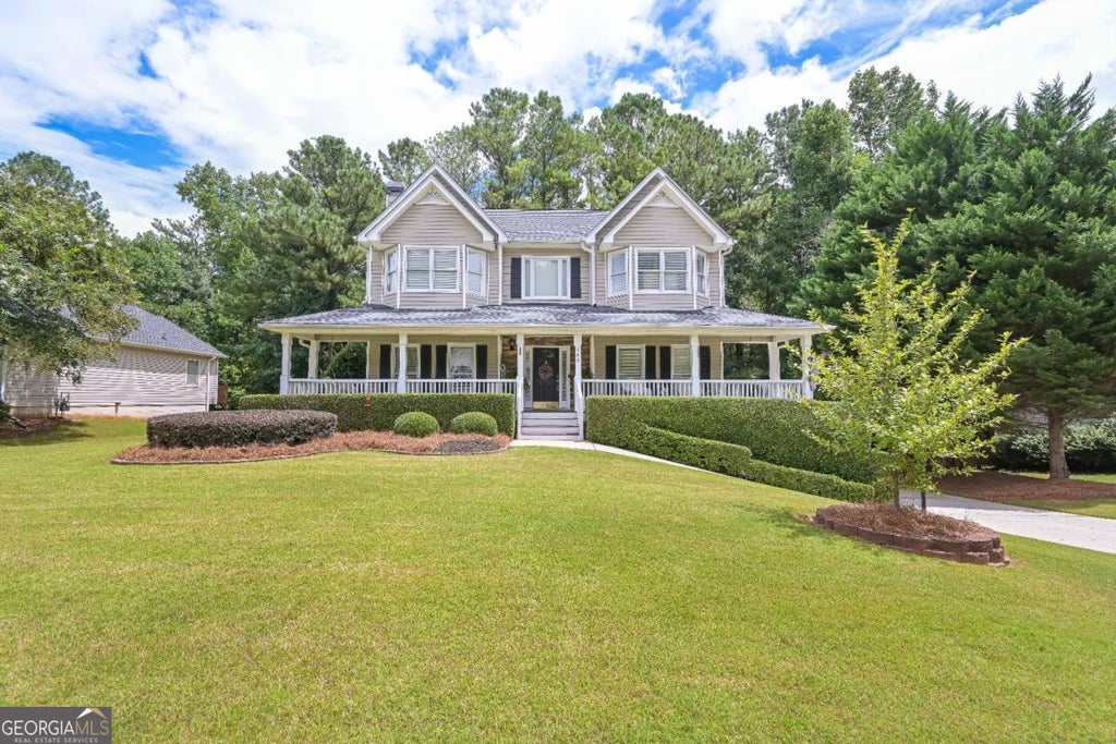 Welcome to Canterbury Lane Subdivision! Pride of ownership shows in this charming one owner home. Step inside the two-story open foyer with hardwood flooring entry and be greeted by a light-filled floor plan perfect for both everyday living and entertaining. The main level features a spacious family room with a cozy gas fireplace, a bright open kitchen with crisp white cabinetry, abundant storage, and all kitchen appliances to remain, plus a separate dining room ideal for gatherings featuring hardwood floors, crown molding, picture frame molding and chair rail that adds timeless charm. Upstairs, you'll find three bedrooms and two full baths, including a relaxing owner's suite with a tray ceiling, a large walk-in closet, and a spa-like bath with a garden tub, separate shower, and double vanity. Both secondary bedrooms are spacious with ample size closet space. The finished basement offers a versatile bonus room-perfect for a media space, home office, playroom. Enjoy outdoor living on the deck overlooking the level fenced backyard, or enjoy your morning coffee on the large rocking chair front porch everyday. This home is located on over a half-acre level lot that goes pass the fenced area and boast an immaculate yard. Located in the beautiful Canterbury Lane Subdivision, this home combines neighborhood charm with space and comfort. Roof was replaced 3 years ago. Great neighborhood amenities featuring swim/tennis/playground. Schedule your showing today. Don't wait!