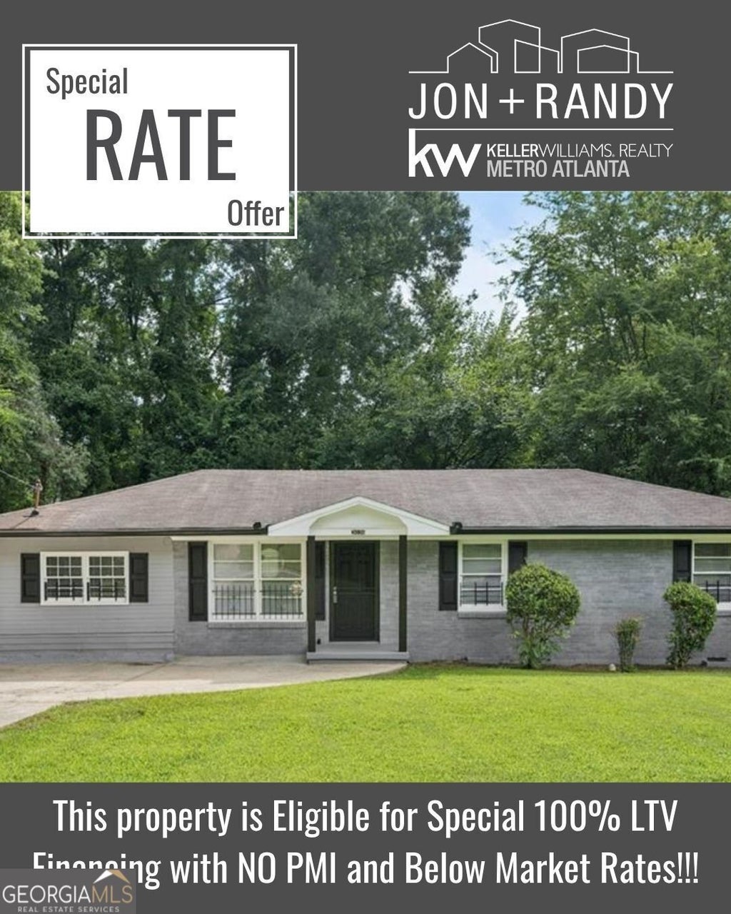 This property is Eligible for Special 100% LTV Financing with NO PMI and Below Market Rates! Freshly updated, this 1960's ranch offers comfortable living and modern touches with 4 bedrooms, 1.5 baths. The home features newly refinished hardwood floors, fresh interior paint, and a brand-new kitchen with crisp white cabinets and high-end white quartz countertops providing a fresh modern finish. The vintage-tiled bathrooms retain their classic charm, complemented by new sinks and vanities. The 4th bedroom off the kitchen features exposed brick walls and a durable epoxy-finished floor, perfect for an in-home gym, workspace, den or guest area. The exterior is of the home is inviting with shutters and freshly painted brick. Enjoy a spacious, fenced backyard that is level and ideal for pets, play, or gardening. Located in the established Gresham Park neighborhood. "The Path" is accessed at the end of the street for beautiful nature walks, bike rides or serious work-outs. It can take you to Stone Mountain or to downtown Atanta where you can hook up to the Beltline. Several parks are nearby and accessed from "The Path". This home is move-in ready and waiting for its next chapter.