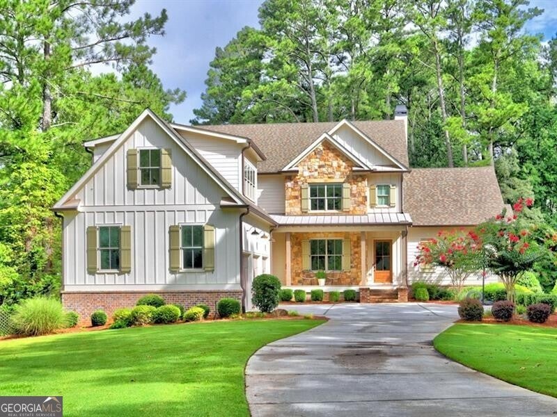 This 5-bedroom, 5.5-bath home offers a perfect balance of elegance and easy living. A welcoming front porch overlooks lush landscaping, setting the tone for the inviting interior where heart pine floors, beamed ceilings, and thoughtful upgrades create an atmosphere of warmth and refinement. The open-concept layout is ideal for both relaxed evenings and lively gatherings-enjoy the fireside family room with custom built-ins, entertain in the formal dining room, or prepare meals in the chef's kitchen with 6-burner gas range, double ovens, built-in microwave, and a generous island with seating. The main-level owner's suite is a serene retreat with vaulted ceilings, spa-like bath, and a custom walk-in closet. A second main-level suite offers flexibility for guests or a private home office. A well-planned mudroom and laundry with smart steamer add convenience to daily life. Upstairs, three additional bedrooms, two full baths, a large bonus/media room, and a finished suite with full bath provide abundant possibilities-au pair suit, hobby room, or a comfortable movie lounge. The unfinished daylight basement opens to a flat backyard-ready for gardening, entertaining, or the addition of a pool. Enjoy peaceful views from the expansive deck or screened porch. Additional features include a 3-car garage with fresh epoxy flooring, whole house generator, smart home technology, irrigation system, and integrated audio. Located minutes from all things Milton (Scottsdale Farms, Matildas Music Under the Pines, 7 Acre Barn & Grille, etc) his home offers both tranquility and convenience-perfect for those who appreciate timeless design, quality finishes, and room to live life their way.