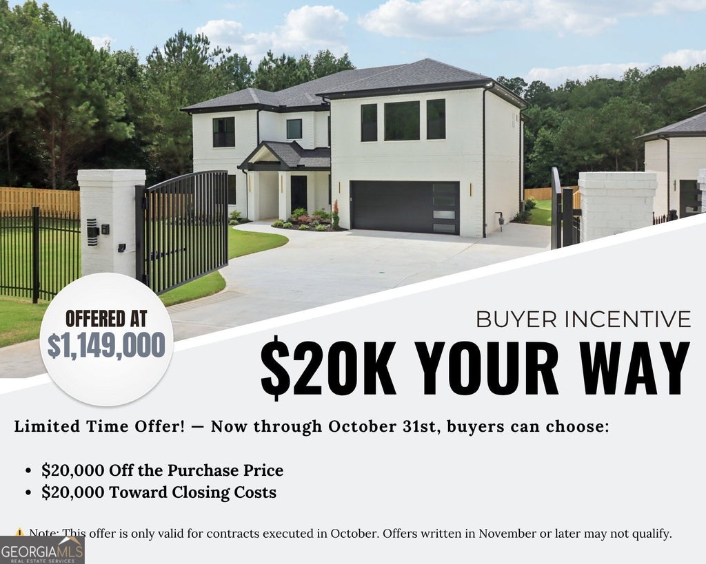 **20K YOUR WAY - Through the end of the month, enjoy $20,000 in buyer incentives-apply it toward closing costs or deduct it directly from the purchase price. The choice is yours**. Experience unparalleled craftsmanship and refined elegance in this gated, fully fenced custom estate, perfectly situated on a beautifully landscaped lot. A striking steel double-door entry welcomes you into your new home, where hand-painted Venetian plaster accent walls, rich hardwood floors, and designer lighting set the tone for the home's elevated style. The grand 2 story living room impresses with a custom fireplace framed by built-in shelving, while the formal dining room offers a perfect setting for hosting. A private office with built-ins and a privacy door provides an elegant workspace on the main level. At the heart of the home, the chef's kitchen boasts an oversized quartz waterfall island with storage, premium ZLINE appliances-including a 6-burner gas range with grill and pot filler, double oven -deep farmhouse sink, walk-in pantry, and dining area, all flowing seamlessly into the living space. A well-appointed mudroom, half bath, and spacious laundry room with sink and cabinetry add convenience to the main floor. The luxurious primary suite on the main level is a serene retreat with its own fireplace and space for a private sitting area, creating the perfect place to unwind. The spa-inspired bath features dual vanities, a free-standing soaking tub, an oversized frameless glass shower with dual showerheads, and a custom walk-in closet with built-in organization, blending beauty and functionality. Walk up the stairs lighted by a motion sensor and you'll find your large open loft/media room with fireplace and custom built-ins and it is complemented by an oversized wet bar with wine rack and sink. Three oversized secondary bedrooms each feature en-suite luxe baths and walk-in closets, while a spacious bonus room offers flexibility. A reading nook/ flex space, half bath, and a second laundry room with sink ensure convenience and comfort. Outdoor living shines with a covered patio complete with a fireplace and custom bar -perfect for year-round entertaining in your landscaped fenced yard. Additional highlights include crown molding, upgraded interior and exterior lighting packages, quartz counters throughout, a two-car garage with built-ins and a utility sink, in-floor electrical outlets, motion-sensor stair lighting, elegant black iron stair spindles, and meticulously landscaped grounds privately gated with a separate gated entrance for mail. Ideally located near Harbins Park, Tribble Mill Park, and scenic walking trails, and just minutes from the shopping and dining destinations this estate also offers easy access to major roadways for a seamless commute-combining privacy, luxury, and convenience.