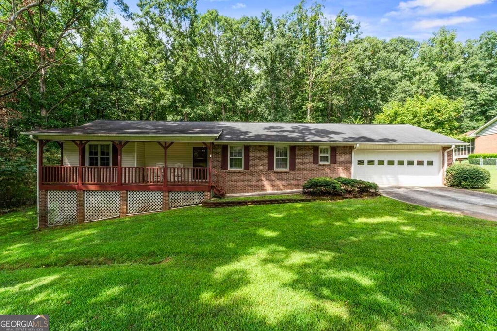 This brick 4-bedroom, 2-bath ranch offers comfortable main-level living on a full basement with bonus finished space and exterior access. The main floor features 3 bedrooms and 2 full bathrooms, including a spacious master suite with its own private bath. A bright, eat-in kitchen sits conveniently off the garage and includes a peninsula for extra counter and cabinet space, plus a dishwasher, electric range, and built-in microwave. The living room centers around a classic oversized brick fireplace with a wood mantle and flows to both the covered rocking-chair front porch and the screened-in back porch/deck. Outside, an oversized shed offers excellent additional storage, and the large yard provides endless possibilities for gardening, play, or entertaining. The basement includes a fourth bedroom and a huge unfinished storage area, perfect for a workshop, home gym, office, or future additional living space. Washer, dryer, and furnishings are included, making this home truly move-in ready