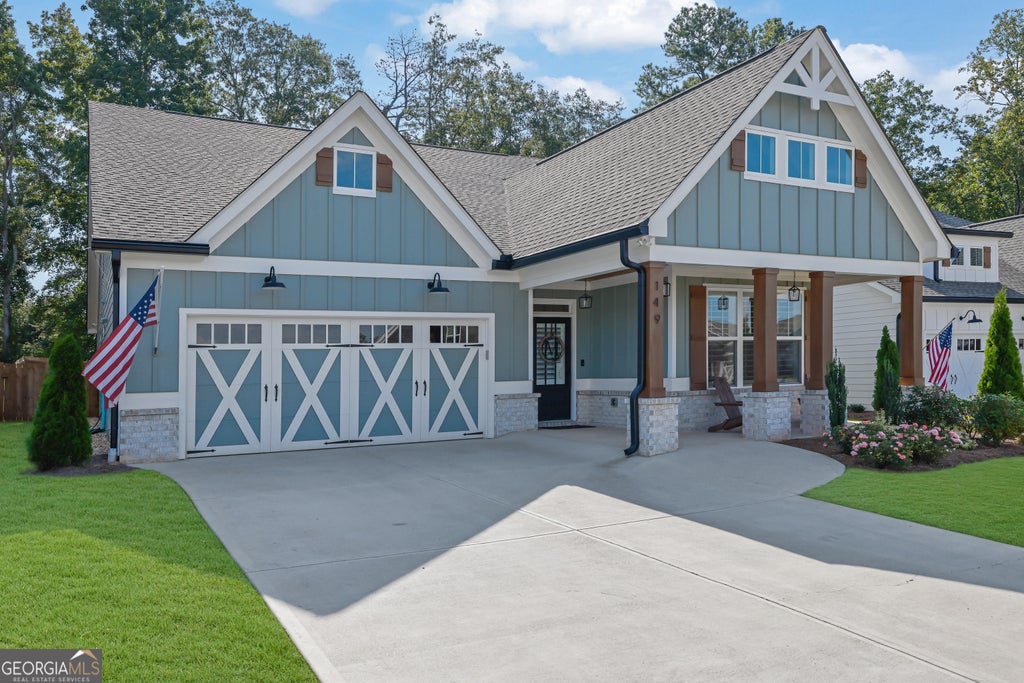 Custom Showcase Home in Holly Springs - Where Modern Farmhouse Meets Thoughtful Design As if Chip and Joanna Gaines built it themselves, this 1.5-story, 4-bed, 3-bath custom home is the definition of warm Southern charm blended with high-end finishes and modern comforts. Just 18 months new, this masterpiece sits in a quaint, private enclave in beautiful Holly Springs, GA, offering luxury, convenience, and character in every corner. Main Features: 4 Bedrooms | 3 Full Bathrooms. 1.5 Stories of Stunning Architecture. 2 Bedrooms on the Main Floor including a spacious Owner's Suite & private Guest Bedroom with Full Bath. Fenced Backyard in a quiet, walkable community. Wheelchair accessible main floor with wide doorways and lever-style hardware Interior Details That Impress: Open Floor Plan & Living Spaces, Gourmet kitchen with oversized island, quartz countertops, & custom Shaker soft-close cabinetry, "Frigidaire Gallery" stainless appliances: double convection oven, 5-burner gas cooktop, vent hood, built-in dishwasher & microwave, Custom coffered ceilings, shiplap accents, farmhouse trim, and plantation shutters throughout, 42" real wood-burning brick fireplace with custom oak mantle & shiplap to ceiling Engineered waterproof hardwood flooring throughout main level (tile in baths), Custom built-ins, mudroom bench, and shiplap details in foyer and vanities, Extra-large owner's suite with: Dual walk-in closets Spa-like bath with dual vanities, quartz counters, walk-in tiled shower, 8" rain head + handheld sprayer, and Moen fixtures. Smart & Efficient Systems Dual HVAC: 3-ton for main floor, 1.5-ton for upper level, "Navien" high-efficiency tankless water heater, Energy-saving LED lighting, upgraded farmhouse light package, Ceiling fans in all bedrooms, family room, patio, and owner's suite, Hard-wired smoke detectors with battery backup Exterior Excellence: James Hardie fiber cement siding & trim for rot-free durability, Stained farmhouse-style columns & shutters Irrigation system & TifTuf Bermuda sod, Termite baiting system installed, 16' painted garage door with glass panels & LiftMaster smart opener (camera, battery backup, ultra-quiet belt drive), Extra-wide driveway and smart entry system, Downspout drainage system, leaf guard gutters, and GAF Timberline HD Architectural Shingles with ridge vent, Patio natural gas line installed for future grill or outdoor kitchen. Perfect for Every Stage of Life Whether you're an active empty nester, a growing family, or simply want the convenience of main-level living without sacrificing space or style, this home delivers comfort, craftsmanship, and curb appeal. Located in the heart of Holly Springs, close to shopping, dining, parks, and top-rated schools.