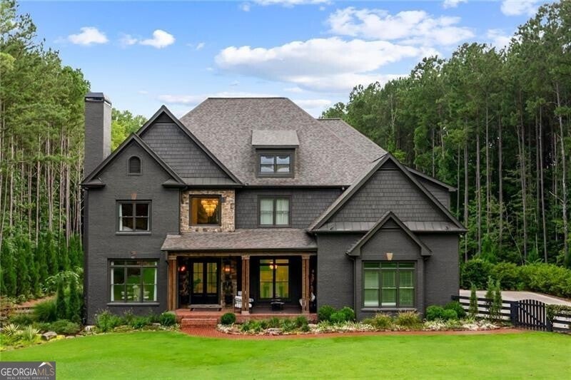 Tucked within a gated enclave and offering the rare blend of a sought-after Alpharetta address and low Cherokee County taxes, this stunning modern cottage-style estate is a true lifestyle property. Set on a beautifully landscaped lot, the exterior stuns new rock pathways, and a full yard transformation including a leveled, aerated backyard perfect for soccer play. Outdoor living is redefined with a heated saltwater pool featuring a blue light system, waterslide, and 10-person spa, paired with a round steel firepit, 18-speaker sound system with in-ground subwoofers, raised garden beds, firepits, and expansive patios for entertaining. Inside, the light-filled home features refinished Ashwood floors, fresh cedar accents, and over $100,000 in Restoration Hardware lighting. A Control4 smart home system integrates sound, lighting, hardwired cameras, and more. The open chef's kitchen is equipped with Sub-Zero, Wolf, and Miele appliances, plus double ovens and a walk-in pantry. Custom window treatments and built-in garage storage remain. The home boasts 7 total bedrooms, including a serene main-level primary suite with a gas fireplace. Upstairs offers four large bedrooms and the terrace level features two additional suites (one with separate entrance and kitchenette), a theatre, game room, and gym with sauna, all complemented by secondary laundry and ample storage. Experience elevated, turnkey living, just minutes from Milton and downtown Alpharetta.