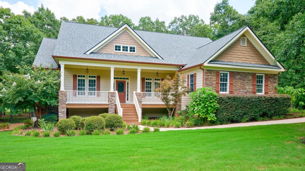 You will LOVE this beautiful CRAFTSMAN home in the sought-after OCONEE COUNTY SCHOOL DISTRICT! Located in The Village at Dove Creek community, this home is conveniently located minutes from Hwy. 316/OCONEE CONNECTOR, Hwy. 53/HOG MOUNTAIN and Hwy. 78, so EASY ACCESS for travel. The ROCKING CHAIR front porch WELCOMES you! As you enter, you will love the OPEN CONCEPT living in this home. WITH NEW PAINT THROUGHOUT, the large dining area has beautiful trim work and a gorgeous chandelier and the family room is oversized, perfect for ENTERTAINING friends and family! Other features include wood flooring throughout the main living area, soaring ceilings, TONS of natural light and a stunning stone fireplace & hearth. The kitchen which overlooks the family room, features a breakfast area with a desk/work nook, custom cabinets, granite countertops, stainless appliances, breakfast bar and a tiled backsplash. THE MASTER is on THE MAIN and has a large bedroom with a tray ceiling and an entry to the screened porch and the MASTER BATH will WOW you with beautiful tiled flooring, HIS & HER vanities with granite countertops, an oversized tiled shower, nice walk-in closet and a tub for relaxing after a long hard day! Also on the main level are TWO ADDITIONAL BEDROOMS, a full bath, laundry room with cabinets and a sink, and a half bath for guests. The secondary level has a BONUS/4th Bedroom and an additional full bath, perfect for an AT-HOME OFFICE. The partially FINISHED basement is just waiting for living to be done and FUN to be had! The recreation area is perfect for a Pool or Ping-Pong table and an extra space for hanging out or watching TV. Also, there is additional bedroom, TONS OF STORAGE, an area STUBBED for A FULL BATH & KITCHEN, perfect for an IN-LAW SUITE, and a WORKSHOP. You will LOVE the exterior of the home which features a NEW ROOF, NEW PAINT, a large SCREENED PORCH, perfect for gamedays this Fall or reading a good book, along with a deck area for grilling out. Below the porch/deck is a HUGE patio area, as well. The 1+ ACRE LOT has a nice private wooded backyard. Lastly, the home includes AN EXTRA TWO CAR GARGAGE with a partially finished area above, which could be potential GUEST QUARTERS. This home won't last long! Call me today for a showing. (Note - Some pictures have been virtually staged.)