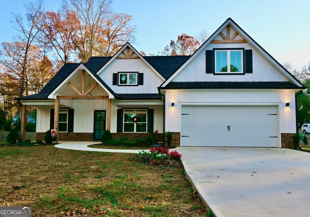 Custom-built modern farm-house located in Tyrone, GA, just 20 minutes from Hartsfield-Jackson airport, built on a private one-acre lot with mature trees. ZERO percent down payment option available. Seller open to paying closing costs for mortgage interest rate buy-down. Low maintenance exterior with hardiplank siding/board and batten, cultured stone knee wall, and vinyl soffits/porch and patio ceilings. Custom iron front door, 100% LED owner-selected black light fixtures, and extra foundation, window, and door insulation, all contribute to very low monthly power bills, even in the warmest and coldest months. Luxury vinyl plank flooring in all rooms, white shaker kitchen/bath cabinets with grey quartz countertops, matching Kitchen Aid black stainless steel appliances, and custom black plumbing fixtures throughout. Expanded, covered back patio is perfect for entertaining with extra lighting, ceiling fan, fireplace, and views of nature and area wildlife. Upper level has an expansive suite/multi-purpose room with ensuite bath and unfinished attic has the height and square footage for potential living space/additional bedrooms. Priced below most recent appraisal value, structures have been or will be removed on adjoining lot for new farmhouse style construction and $1M+ plus existing and upcoming home communities within 2 miles. Just a short drive to Town of Tyrone parks/shopping or a few miles to Peachtree City restaurants, etc. Sought-after Fayette County schools!