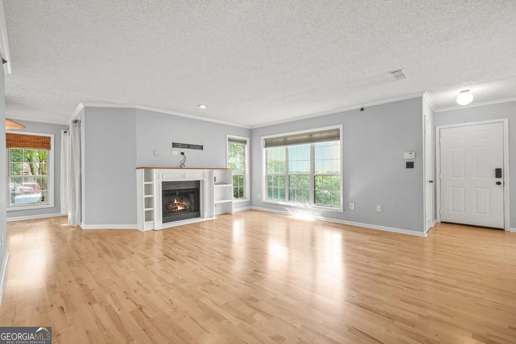 Welcome to 305 Mill Pond Court SE, a beautifully maintained 2-bedroom, 2-bath condo nestled in the heart of Smyrna, GA. Offering 1,379 sq ft of thoughtfully designed living space, this home is filled with natural light, featuring tall windows and hardwood floors throughout. The open concept layout includes a spacious living room with a cozy gas fireplace and a designated dining area just off the kitchen, perfect for entertaining. The kitchen is equipped with stainless steel appliances, stone countertops, oak-stained cabinetry, and a stylish tiled backsplash. Just beyond, a bright and versatile sunroom provides additional space for a home office, fitness area, or lounge, with direct access to a private patio. The oversized primary suite features a walk-in closet and an en-suite bath. Both bathroom features tub/shower combo, tiled flooring and stone-top vanity. Community amenities include serene lake views, a swimming pool, tennis courts, and beautifully landscaped grounds. Enjoy close proximity to Truist Park and The Battery, along with easy access to major highways, top-rated schools, and plenty of shopping and dining options. This condo blends comfort, convenience, and charm in this calm community. With plenty of oppurtunity to customize and make it yours, don't miss your chance to call it home!