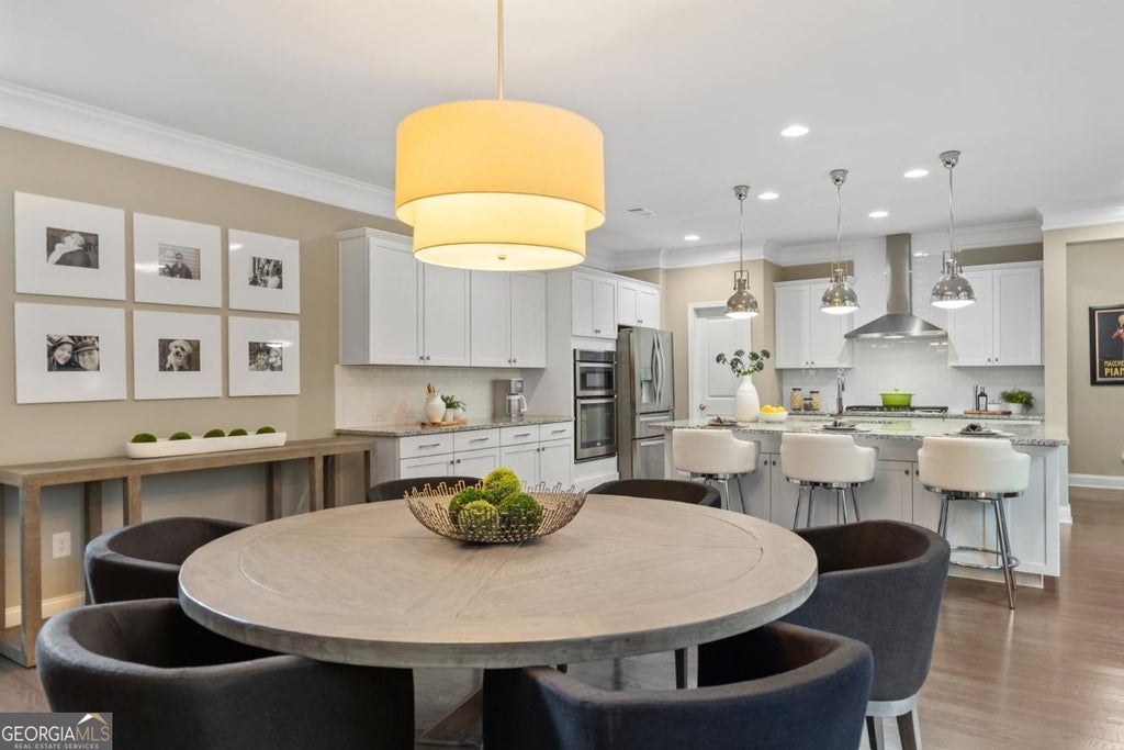 MODERN ELEGANCE AND SOPHISTICATED DESIGN IN THIS UPGRADED 5 BEDROOM HOME WITH PRIVATE BACKYARD IN SOUGHT AFTER PROVENCE SWIM TENNIS COMMUNITY CONVENIENTLY LOCATED NEAR THE COLLECTION, HALCYON AND THE GREENWAY, IN FORSYTH'S TOP SCHOOL DISTRICTS! One of Ashton Woods most popular plans, this spacious kitchen with double island opens to both a keeping room and two story grand room with wall of windows. To accentuate an already beautiful plan, our original owner upgraded to Restoration Hardware lighting and expanded the kitchen island. Two modern fireplaces, one in the family room and one in the keeping room, give you room to expand for dining, entertaining, game or movie night. Hardwoods throughout the main provide beauty and low maintenance. The entry is flanked by formal dining room with stunning Restoration Hardware chandelier and home office with French doors. You'll also find a guest suite on the main with spacious bedroom and full bath with walk in shower. Upstairs you'll find an oversized primary suite with sitting area and RH lighting, large primary bath with double shower and spacious walk in closet. Three additional bedrooms are generously sized and have walk in closets, and adjoining baths. Walk out from main level to a large patio, perfect for entertaining and grilling in your private backyard. There is much to love about this popular swim tennis community that has sidewalks throughout the community and extending down Ronald Reagan to The Collection or Halcyon! Walk or bike to shopping and dining. A new Whole Foods is coming in near the back entrance, which is close to this home! Check out the school scores- tops in the state and country.
