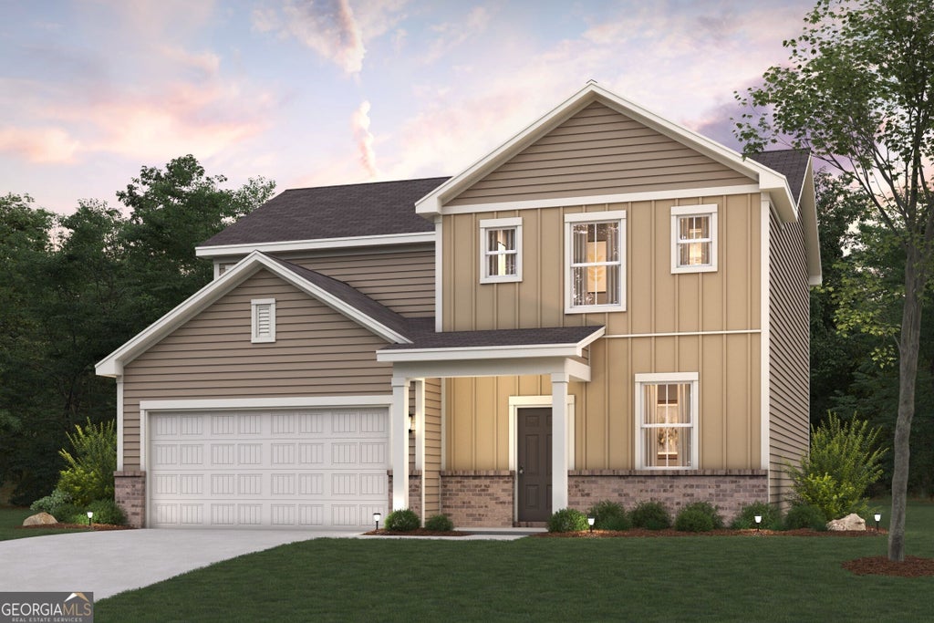 The Fontana offers two stories of inviting living space and stylish features. On the main floor, the two-story foyer leads to an expansive great room, a charming dining area, and a well-appointed kitchen with a spacious center island and walk-in pantry. As you head upstairs, you'll find a wide-open loft, two secondary bedrooms, a full-hall bathroom, and a convenient laundry room. The lavish owner's suite showcases a walk-in closet, dual vanities, and a walk-in shower.