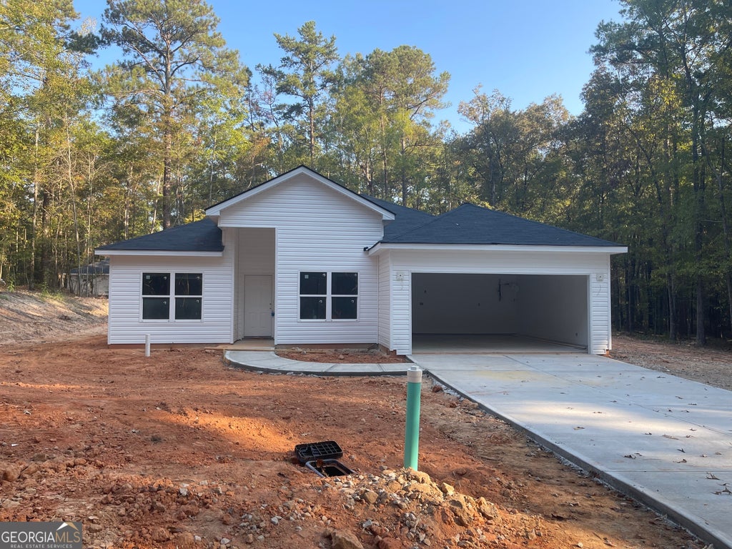 This home is Under Construction Now, will be move in Ready Oct 2025. Looking for a brand new ranch style home on a nice private lot in Woodbury? We have 2 to choose from. This home is on a short quaint dirt road with 2 other homes. 1504 heated sq ft 4 bedroom/2 bath ranch home on 0.766 wooded acres with city utilities. This gem has plenty of space between neighbors, w/easy access to downtown Woodbury, Greenville, Zebulon, Newnan, Senoia. The kitchen has granite tops, soft close cabinetry and s/s appliances, overlooking the family room and dining area. This is a split bedroom plan. The owners suite features trey ceiling, his/her sinks, separate garden tub/ shower, and nice walk in closet. Bedrooms/closets will be carpeted & the rest of the home with Luxury Vinyl Plank flooring. Bathroom vanities are comfort height. Brushed Nickel accents. Smooth ceilings. Ceiling fan in family room and master bedroom. Fireplace in family room. Back patio. Level yard with lots of space to entertain, play with the family or just sit and relax. Total electric. No hoa. USDA area, public water, sewer and hi speed internet****Photos of finished home uploaded are from a previous build-elevation, finishes and color selections may vary. *** AGENTS PLEASE READ PRIVATE REMARKS.*** We have 2 homes at this location. Preferred Loan officer: $3,000 toward cc PLUS Lender Credit-ask Christy for Details.