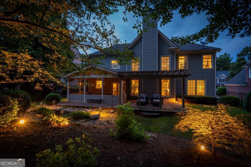 ENJOY GOLF COURSE VIEWS FROM YOUR SCREENED IN PORCH! LOCATED ON THE 4TH HOLE, THIS HOME FEATURES AN UPDATED, WELL-EQUIPPED KITCHEN, OVERSIZED PRIMARY SUITE, AND LUSH LANDSCAPING. Throughout the home you'll find a neutral color palette, hardwood flooring, and updated lighting. Soaring ceilings in the family room allow for plenty of natural light and a floor-to-ceiling stone fireplace. The kitchen has newer white cabinetry, stone countertops, newer appliances and a large island. A guest suite on the main level offers pretty views of the backyard and golf course as well as a full bathroom. Rounding out the main floor is a formal dining room and a formal living room that could easily be used as an office. Upstairs are four large bedrooms including the primary suite. The suite's high ceilings, separate sitting area, generously sized closet with custom organizers, and bathroom with new quartz countertops make it the perfect place to retreat and unwind at the end of a busy day. A well-manicured backyard features mature landscaping with lighting, WIFI-enabled irrigation, wrought-iron fencing, a pond with a waterfall, and a stone patio covered by a pergola. Unlike many homes in the area, this home features a flat lot with plenty of room for playing or gardening. This home has been well-maintained and includes a whole-home surge protector and updated HVAC that includes a separate zone for the primary suite. This is an excellent opportunity to take advantage of the country club lifestyle Windermere offers at a great value. Enjoy the swim, tennis, golf community that also includes pickleball, basketball and a full time activities director! There is always something going on in Windermere, fun for all ages! This sought after community is also close to shopping and dining at The Collection, Halcyon, Cumming City Center and along highway 20 and Marketplace blvd. Great parks, dog parks and Big Creek Greenway are all nearby. Top Forsyth county schools!