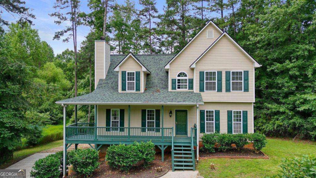Welcome to this inviting residence featuring a charming open front porch, perfectly situated in the desirable Paces Lake Community of Dallas, GA. Surrounded by mature trees and backing to a serene lake, this home offers both privacy and peaceful views. The main level boasts a spacious primary suite with hardwood floors extending throughout. Upstairs, you'll find three additional bedrooms and a full bathroom, ideal for family or guests. A full basement provides abundant storage and endless potential for future expansion. Relax and unwind on the screen-in-porch, overlooking a lush backyard and tranquil lake views. Additional storage beneath the porch adds even more convenience.