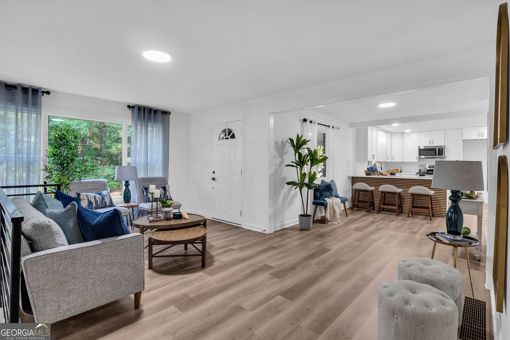 Step into this fully renovated 4-bedroom, 4-bath ranch-style home in Smyrna 30082, offering the perfect blend of modern upgrades, spacious living, and prime location. Directly across from Russell Elementary School and just minutes from Floyd Middle School, Heritage Park, the Silver Comet Trail, and Smyrna Market Village, this home delivers both comfort and convenience. Enjoy a long list of upgrades including a brand-new roof, new water heater, new insulation, new flooring, fresh interior and exterior paint, and a gorgeous new chef-style kitchen featuring white cabinetry, quartz countertops, tile backsplash, and new stainless steel appliances. Bathrooms have been stylishly renovated with quartz vanities and modern fixtures. The finished basement, complete with two private entrances and two full bathrooms, adds incredible versatility to the home, ideal for use as a guest suite, income-generating rental, home office, media room, or playroom. Plus, with a carport and generous driveway, this home offers ample parking for multiple vehicles, a rare find in the area. With over 3,000 square feet of finished space and a private backyard, this move-in ready Smyrna home is a must-see! Schedule your private showing today and discover why this home checks all the boxes!
