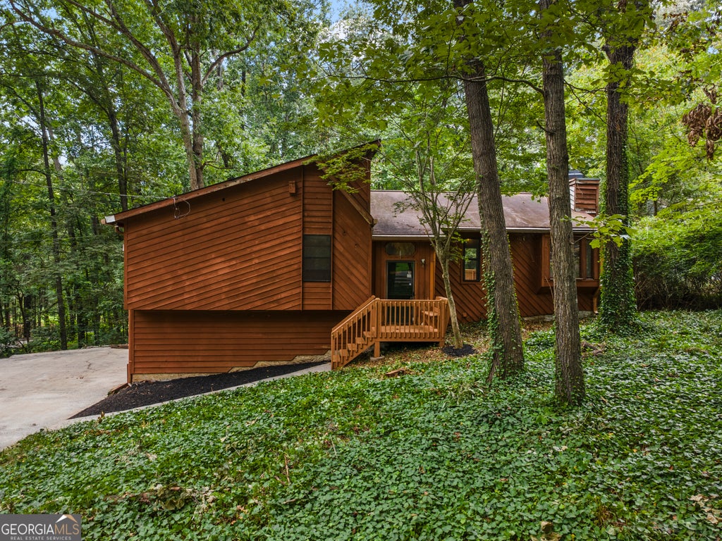 Investor Special or DIY Dream! Bring your vision to this split-foyer home just minutes from lively downtown Woodstock. Inside, you'll find a vaulted family room, dining area, and an island kitchen with hardwood floors throughout the main living spaces. The home offers 3 bedrooms and 2 full baths upstairs, plus an unfinished lower level with endless possibilities. Deck overlooks a private, wooded backyard. Don't forget the Two-car garage. Tons of potential to make it your own!