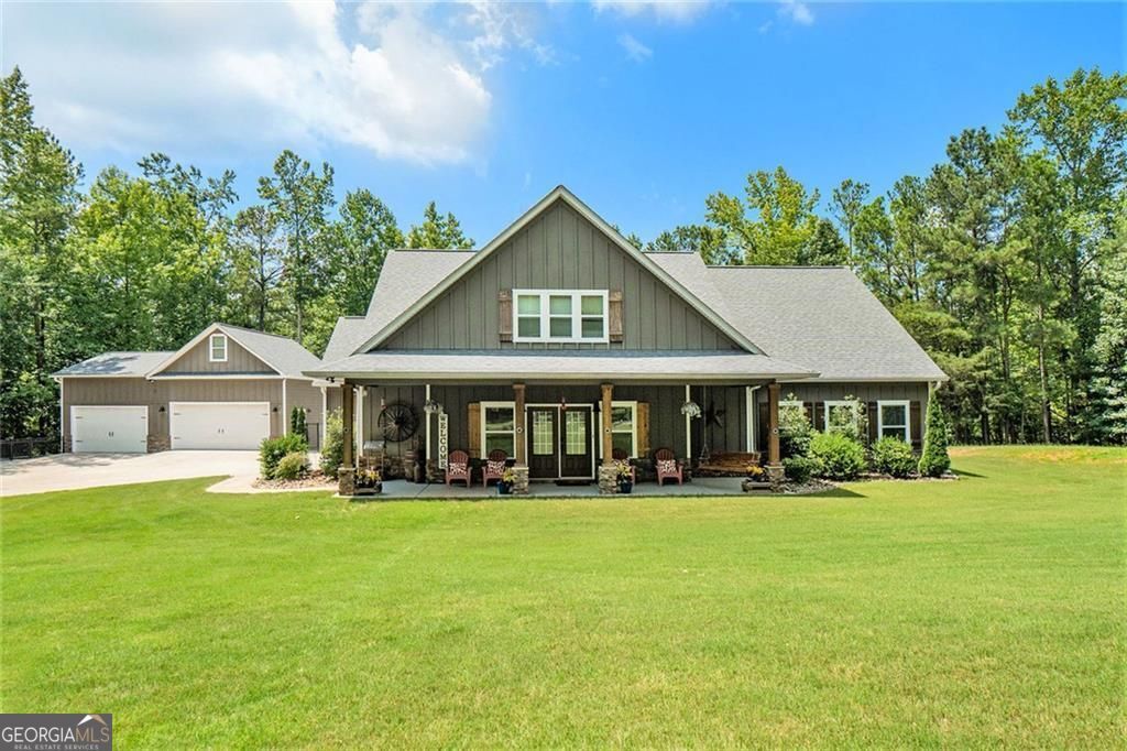 HOT NEW LISTING!! Exquisite Craftsman Home on 5 Scenic Acres - A Private Retreat with Upscale Touches Tucked away on 5 beautiful, gently rolling acres, this stunning craftsman-style home offers timeless design, high-end finishes, and space to enjoy both inside and out. With 5 bedrooms and 3 full baths, this thoughtfully designed home is ideal for families, entertainers, or anyone seeking privacy with style. Step inside to find gorgeous wood floors throughout the main level, an open-concept kitchen, living, and dining area, and custom details that showcase true craftsmanship at every turn. The heart of the home opens into a massive 4-seasons sunroom through elegant French doors-perfect for relaxing year-round while enjoying the beauty of nature. The sunroom also features private access to the main-level master suite, offering convenience and a touch of luxury. The master suite is a true retreat, with a spa-like bathroom, featuring upscale finishes like a walk-in shower designed for relaxation. Car enthusiasts and hobbyists will love the 4-car detached garage, complete with a huge upstairs storage area-ideal for a workshop, studio, or future finished space. The fenced-in backyard is perfect for pets or play, and big enough to accommodate a pool if you're ready to create your own backyard oasis. Whether you're looking to settle down in peaceful surroundings or entertain in style, this exceptional home offers the best of both worlds-space, comfort, and quality craftsmanship on a picturesque piece of land.