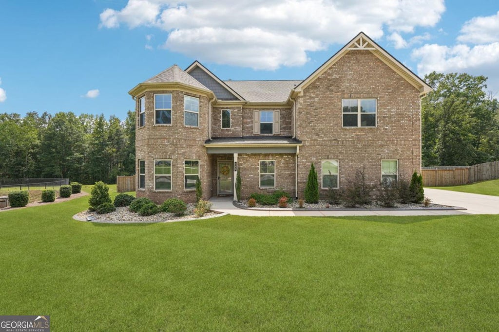This exquisite five-bedroom, four-bath residence offers over 3,700 square feet of living space and was built just a few years ago. Step inside to an open, airy layout with a chef's kitchen featuring a massive island, perfect for cooking, entertaining, or gathering with loved ones. A bedroom on the main level provides flexibility, while the loft and generously sized bedrooms give everyone plenty of room to relax. The expansive owner's suite is a true retreat, complete with a cozy sitting area and the walk-in closet you've always dreamed of. Outside, enjoy one of the largest backyards in the neighborhood - ideal for play, entertaining, or peaceful evenings at home. Nestled in a quiet community where homes aren't too close together, you'll appreciate the sense of privacy while still being just minutes from shopping and dining. Only five minutes to the new Publix Shopping Plaza and ten minutes to The Bridges at Jodeco, with Sprouts, Costco, and exciting new restaurants, this home truly combines space, comfort, and convenience