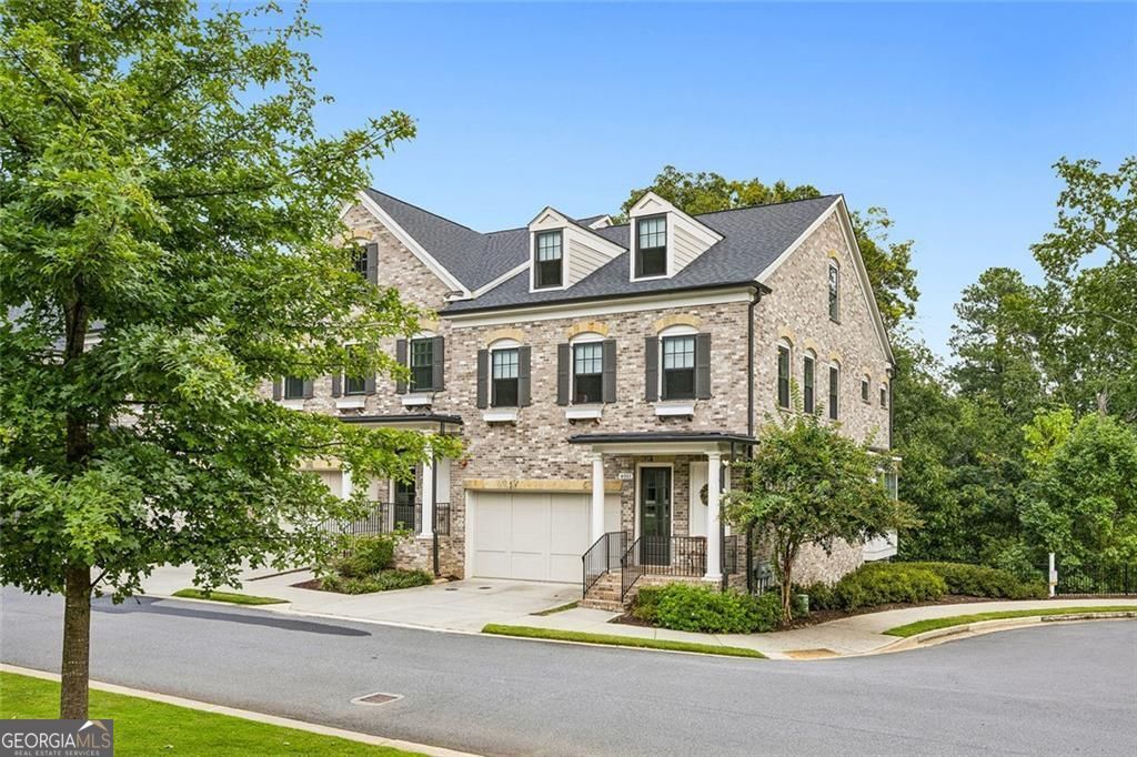 Welcome to Atwater, one of Sandy Springs' most desirable gated communities, where luxury and convenience come together in an unbeatable location. Just a short walk to City Springs, City Walk, upscale shopping, and top dining, this like-new end-unit townhome offers refined living with the ease of a private elevator servicing every floor. Step inside from the covered porch into a sunlit foyer that opens to a spacious, open-concept main level. The chef's kitchen is designed for both function and style, featuring high-end stainless steel appliances, a wall-mounted pot filler, quartz countertops with eased edges, a tiled backsplash, 42-inch upper cabinets, and a walk-in pantry. An oversized island overlooks the dining and family rooms, where a gas fireplace creates a warm centerpiece. A French door leads to a screened porch with wooded views-perfect for year-round relaxation. Throughout the home, hardwood floors on all three levels and soaring ceilings (10 feet on the main, 9 feet upstairs and on the terrace level) enhance the sense of space and light. The elegant staircase with stained oak treads leads to a loft-style flex space, ideal for an office or sitting area. Upstairs, the private primary suite includes a spa-like bath with dual quartz vanities, an oversized frameless shower, a large Kohler soaking tub, and a generous walk-in closet. A secondary en-suite bedroom and a spacious laundry room complete the upper level. The terrace level offers a third bedroom and full bath, a second family room, and abundant storage. French door opens to a private patio, extending the living space outdoors. Residents of Atwater enjoy exclusive access to a sparkling community pool, all within a beautifully designed neighborhood built just six years ago with exceptional finishes and architectural detail.