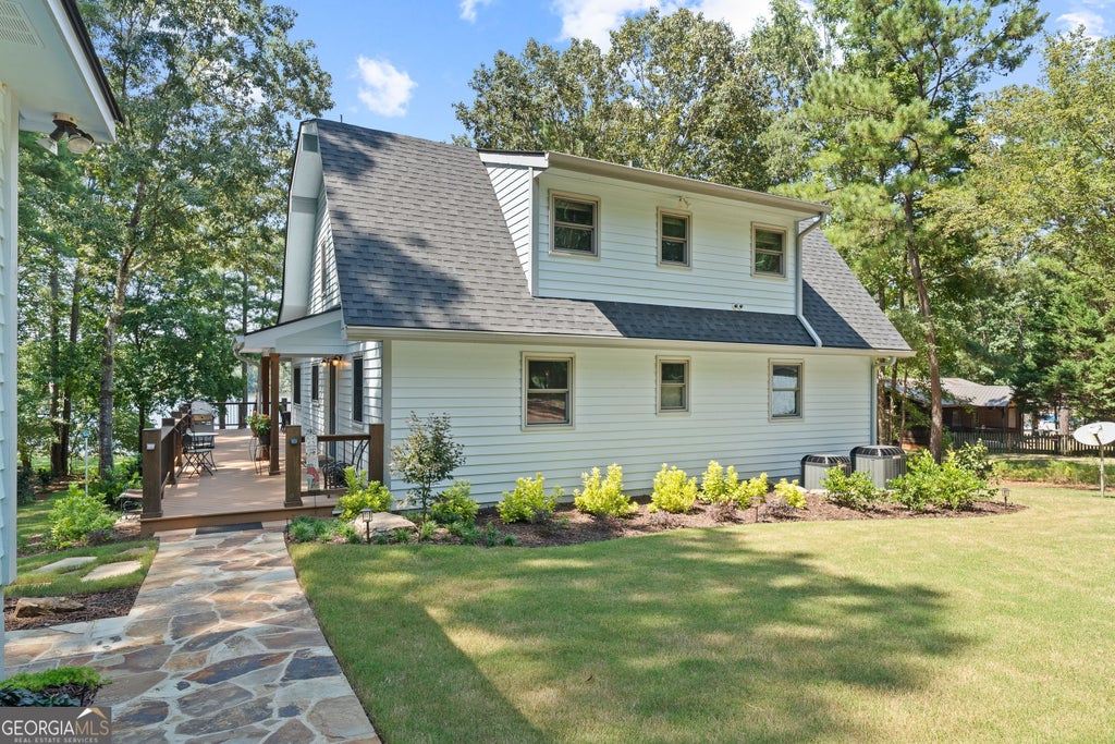 IMMACULATELY RENOVATED MAIN LAKE HOME! Hard to find move-in-ready property on the prettiest part of Lake Oconee (Richland side) with gorgeous main lake views and private max dock. Beautiful, wooded setting with detached 2-car garage, wrap around porch with covered entry and full-length deck facing the lake. Open floor plan with LVP flooring, kitchen with granite countertops and high-end stainless-steel appliances, vaulted, tongue-groove living room with stone fireplace and large sunroom. Two bedrooms with bathroom on the main floor. Loft area upstairs with master bedrooms suite and luxurious bathroom. The perfect lake property waiting to make you memories!