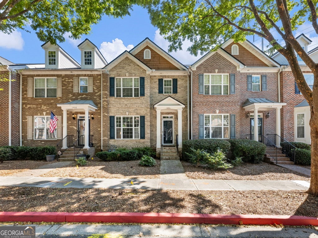 This breathtaking townhome that has been immaculately maintained with real hardwoods throughout the main, gorgeous eat-in kitchen with breakfast bar, white cabinets, granite countertops, gas cooking, stainless steel appliances (including a refrigerator), and pass through to the family room is available! GATED community of Kennesaw Battle with swimming pool and tree lined, private back deck to relax on and entertain on, and walk/bike to the trails of Kennesaw Mountain. There is not a better location than this! The Primary suite includes a newly tiled walk-in shower, dual vanities in the bathroom and walk-in closet along with trey ceilings. The laundry room is conveniently located upstairs where there are 2 additional bedrooms and an additional fill bath. The basement is FINISHED with a full bathroom and the bonus room can also be used as a 4th bedroom/multi-purpose room or office.