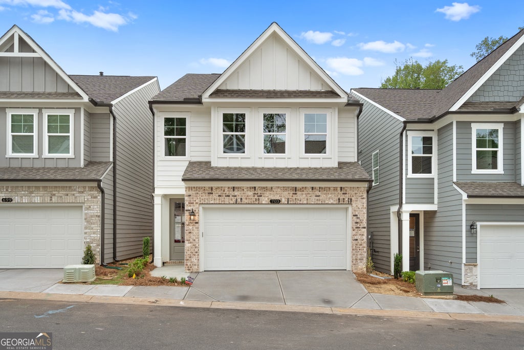 Welcome to The "Sophisicated" Marion B lot 66, a stunning 3-bedroom, 2.5-bath residence in the sought-after GATED Village at Shallowford just steps from pool and clubhouse. This move-in-ready home spans 2,008 sqft, combining elegance with practicality. The open layout invites you into a bright foyer leading to a gourmet kitchen with a large island, 42" cabinets, gleaming Quartz countertops, and top-of-the-line stainless-steel appliances. Relax in the cozy living room, complete with a charming shiplap fireplace and 9 FT ceilings throughout the main level, or entertain guests in the adjoining dining room with easy access to the private patio. Retreat to the oversized primary suite, offering a luxurious extended tile shower and a walk-in closet, providing a peaceful escape from the secondary bedrooms. Enjoy the open railing staircase that adds a feeling of light and spaciousness and oak treads on the stairs enhance the sophisticated ambiance. Set within the ONLY gated community with a pool and clubhouse in Kennesaw, enjoy quality amenities and proximity to excellent schools. With its charming exteriors and open floor plans, this home is a true gem. A great investment property! Ask about our rate buy down promotions Self-guided tours available!