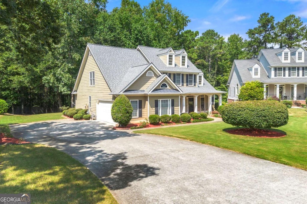 You'll fall in love as soon as you drive into this beautiful neighborhood and up to this Southern Craftsman charmer, perfectly set on a cul-de-sac with a manicured lawn and side-entry garage! Inside, the spacious dining room to your left is ideal for family gatherings and holiday meals. The oversized family room is the heart of the home-perfect for movie nights and game time. The open gourmet kitchen flows seamlessly into the sunroom, where you can start your mornings with coffee and natural light. The first floor offers a luxurious main suite with a large sitting area that's big enough for an office, a sofa, reading nook, or even an exercise space. Relax for hours in the spa-like bathroom with a soaking tub. An additional first-floor bedroom and full bath provide the perfect private space for guests. Upstairs, you'll find generous secondary bedrooms, each spacious enough for kids, guests, or even a home office. Enjoy outdoor living on the covered rocking-chair front porch-deep enough for a swing and plenty of chairs. This home offers space, comfort, and charm in every corner. Don't wait-this one won't last!
